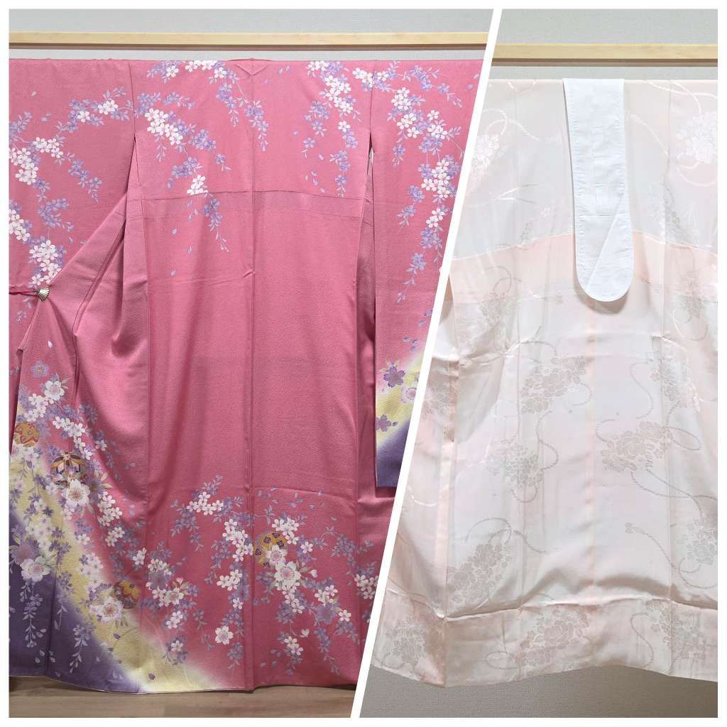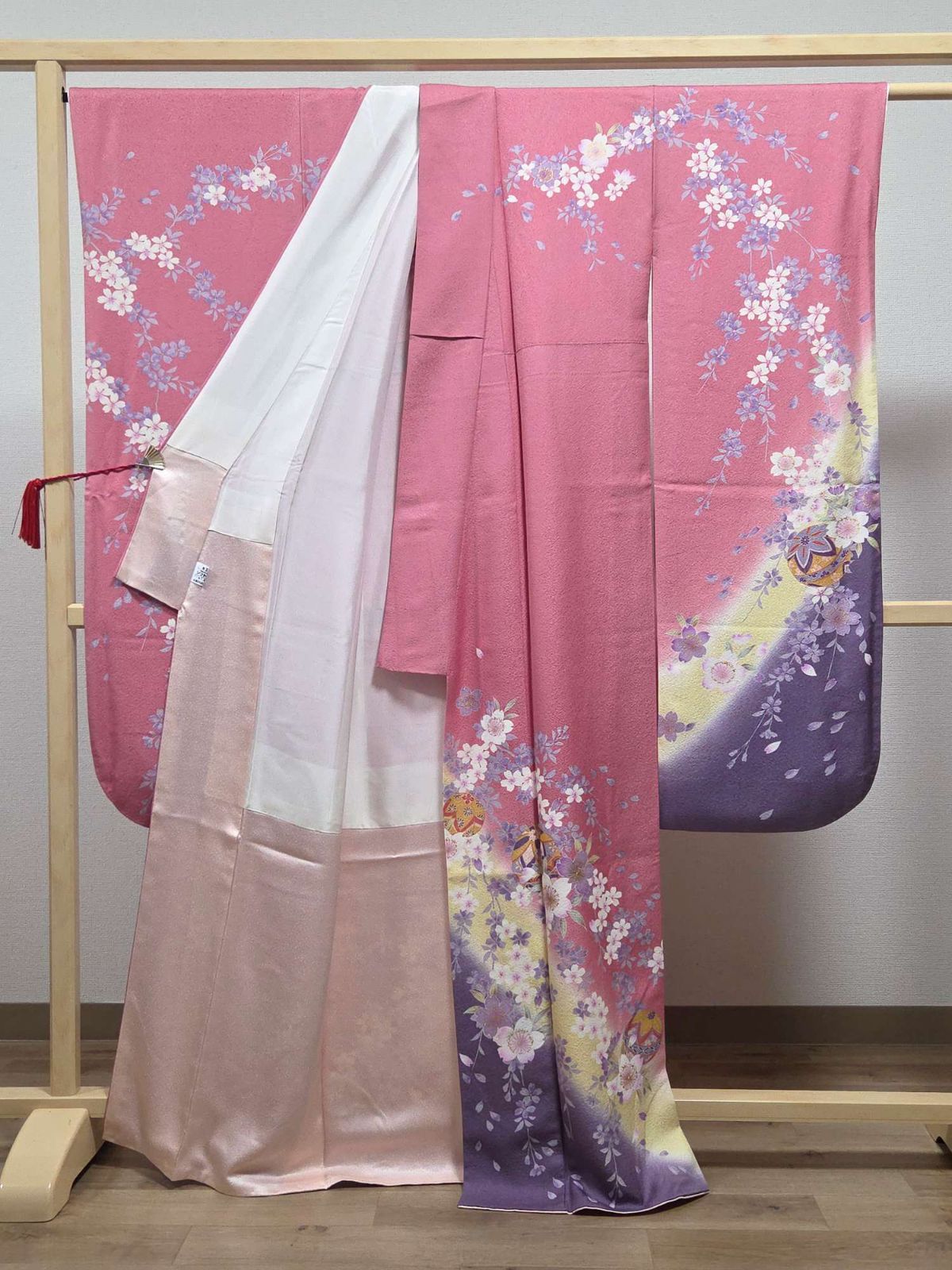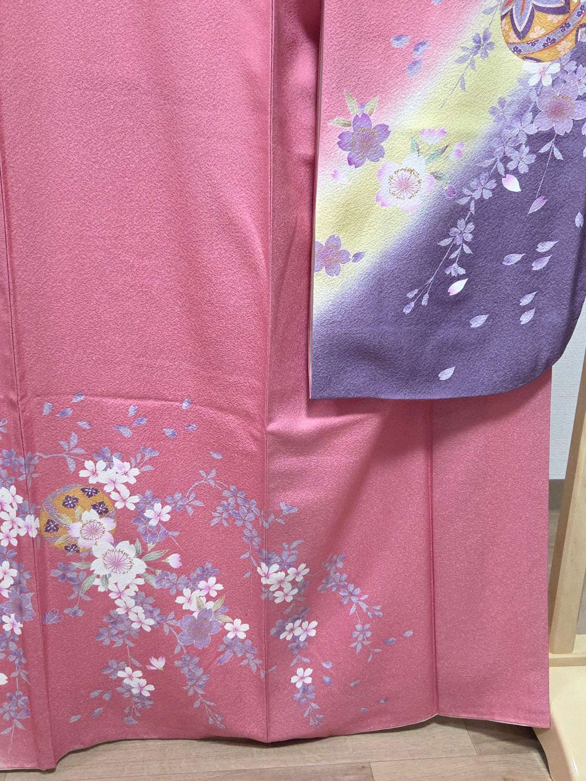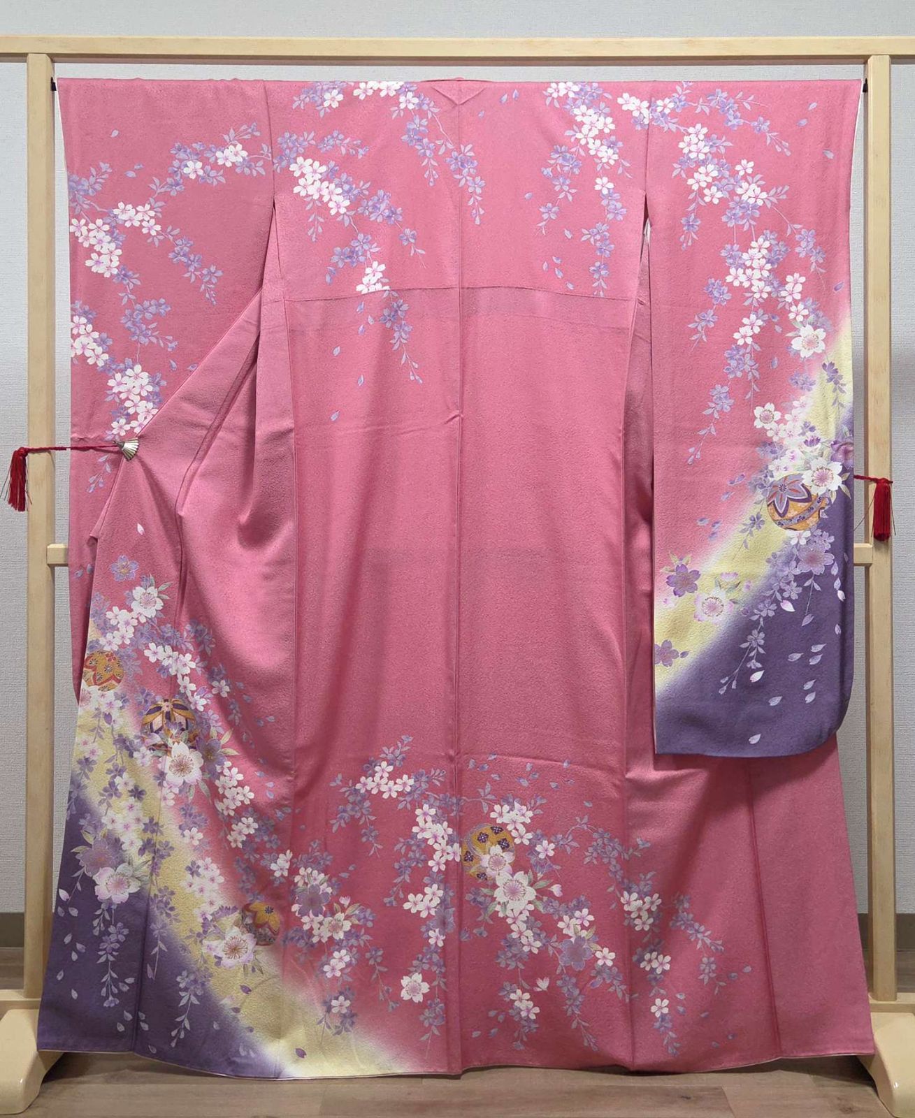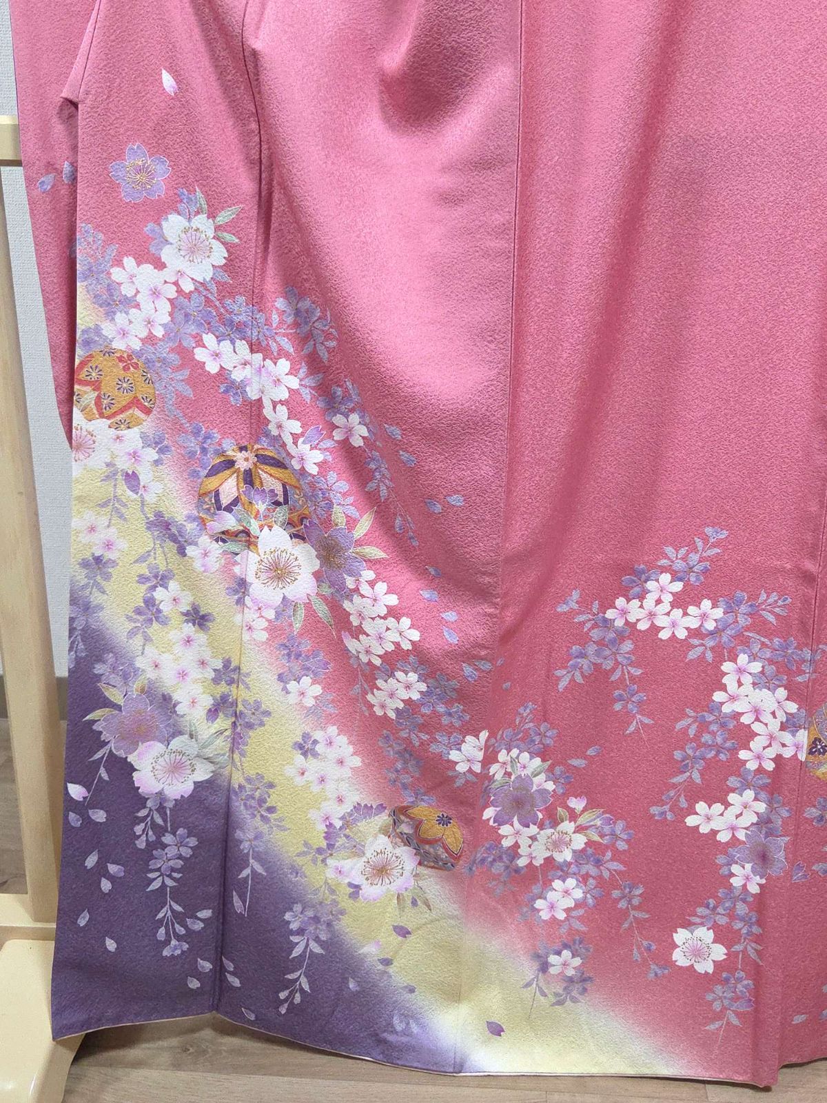 こちらは、D2◆着物くつろぎ 桜に鞠模様 金糸 刺繍 金彩 ピンク 袷 正絹 振袖 着物になります。
