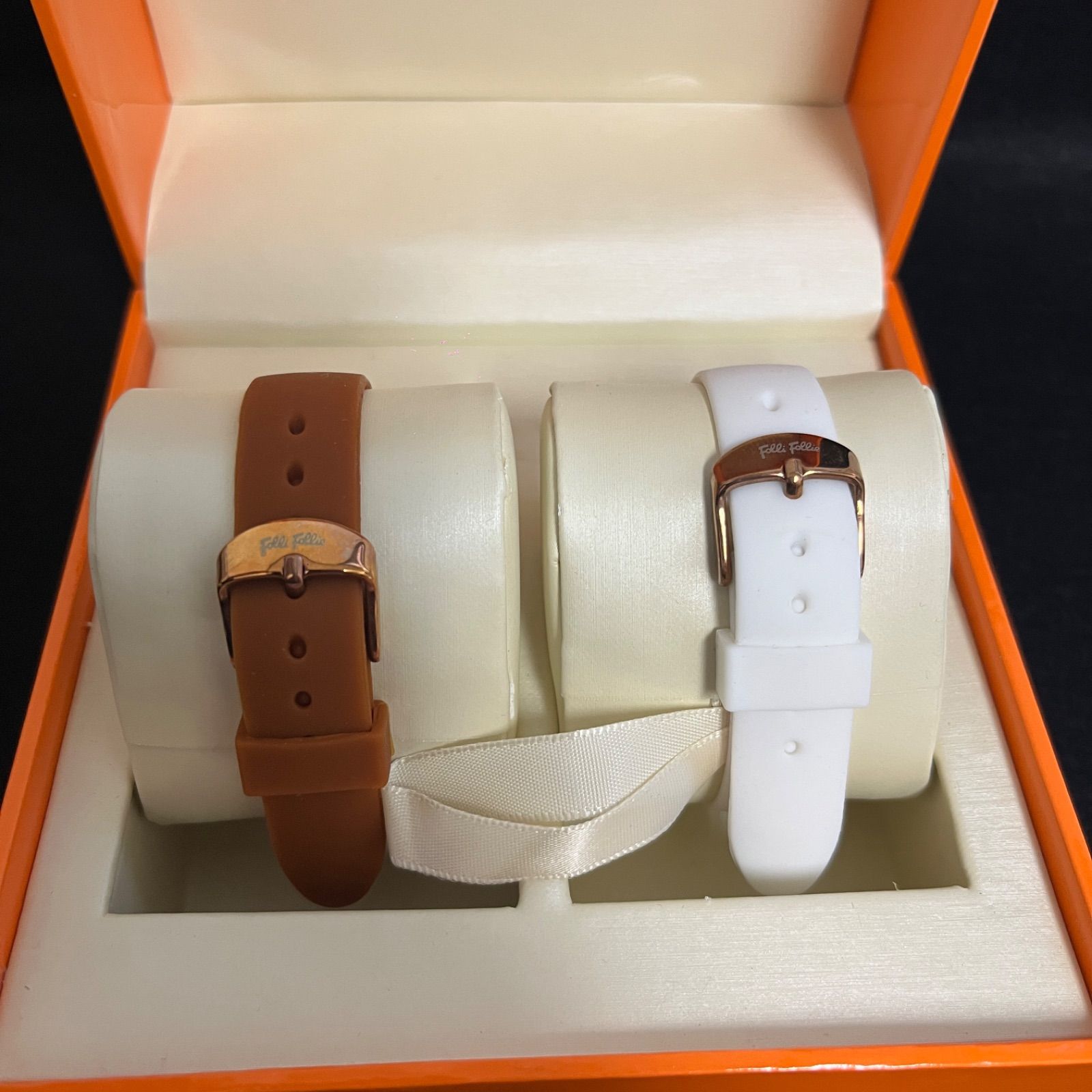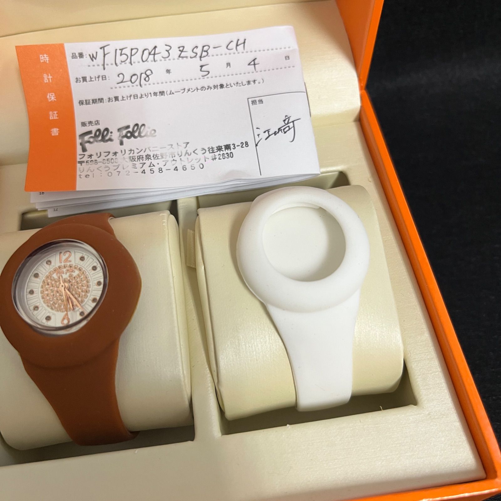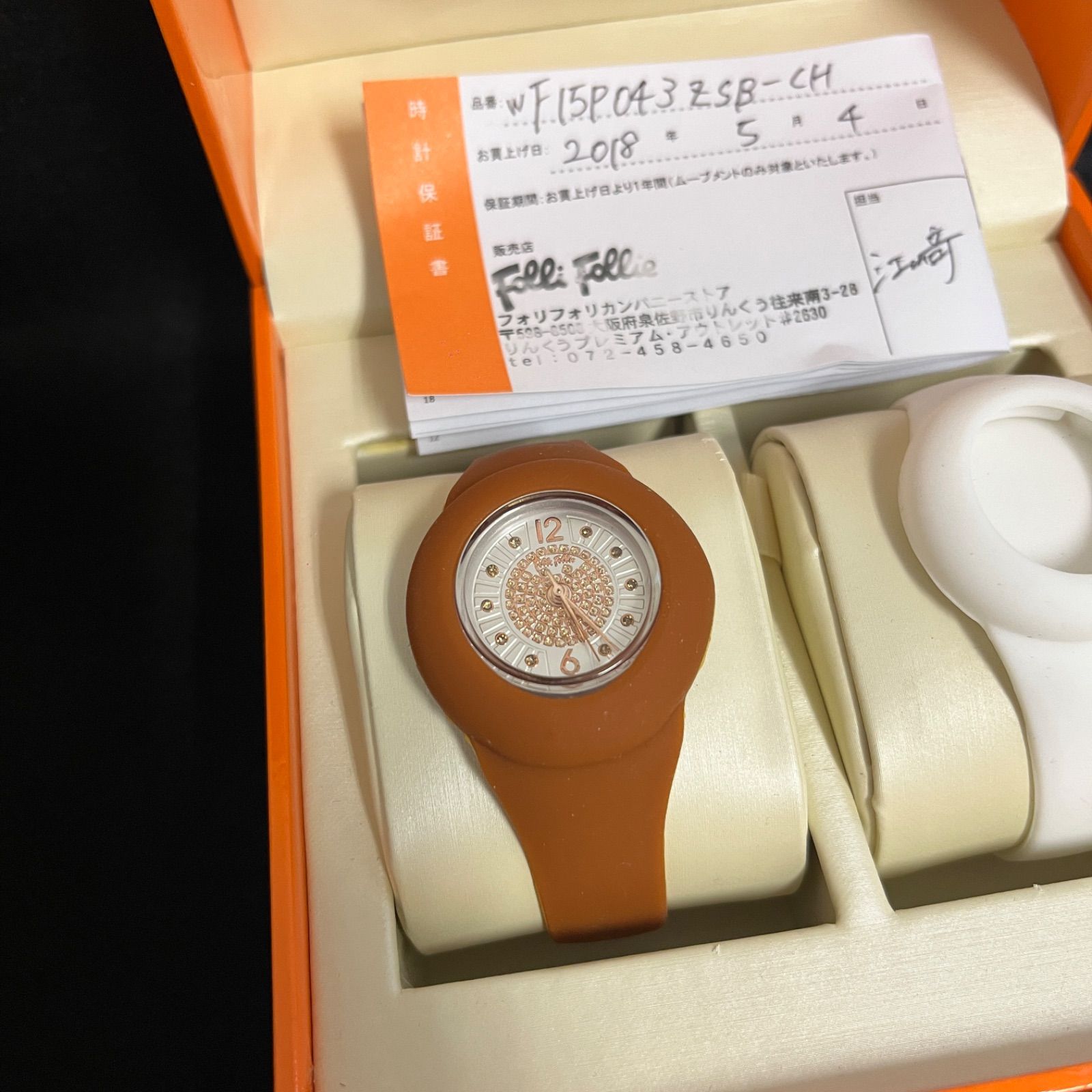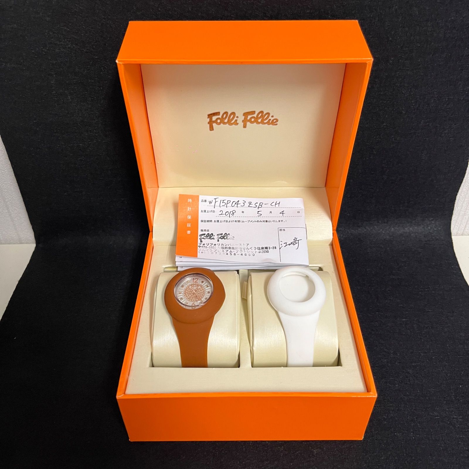 【稼働品】 Folli Follie ラバー ベルト 腕時計 付け替えベルトセット 動作確認済み 電池交換済み ブラウン ホワイト フォリフォリ 外箱付き