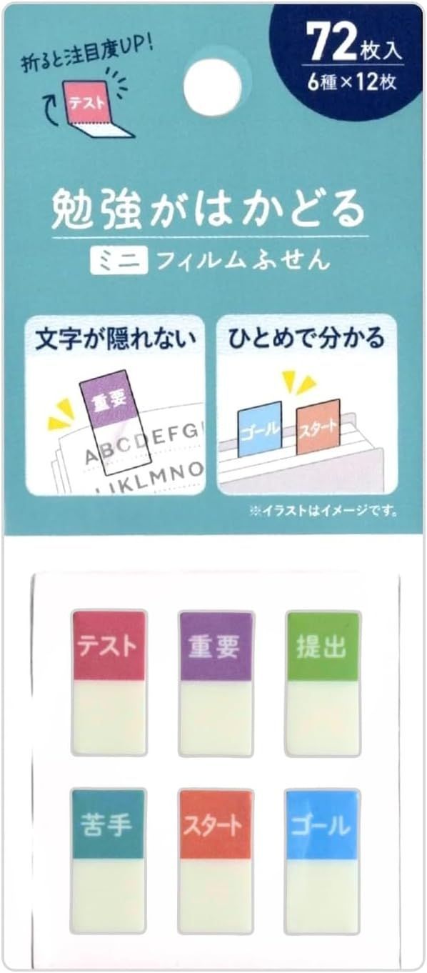 勉強がはかどる ミニフィルム ふせん 付箋 ミニ付箋 時短 勉強 学校 6種×12枚 72枚入