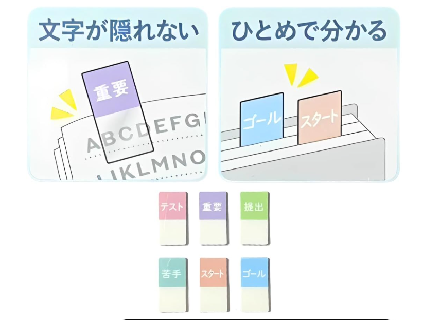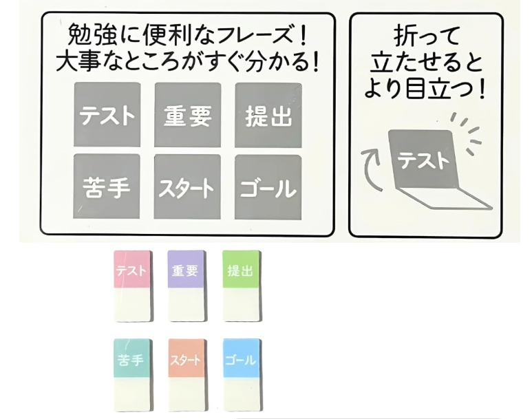 小さめサイズだからページの余白や単語の横にも貼りやすく、復習や暗記に最適。