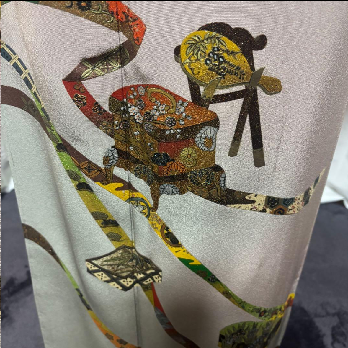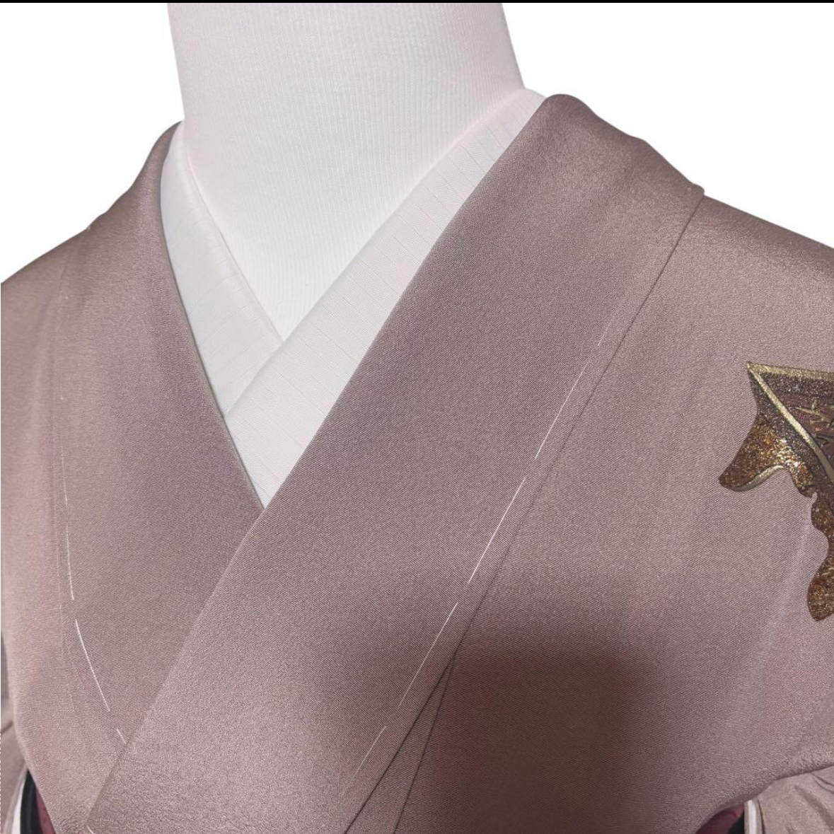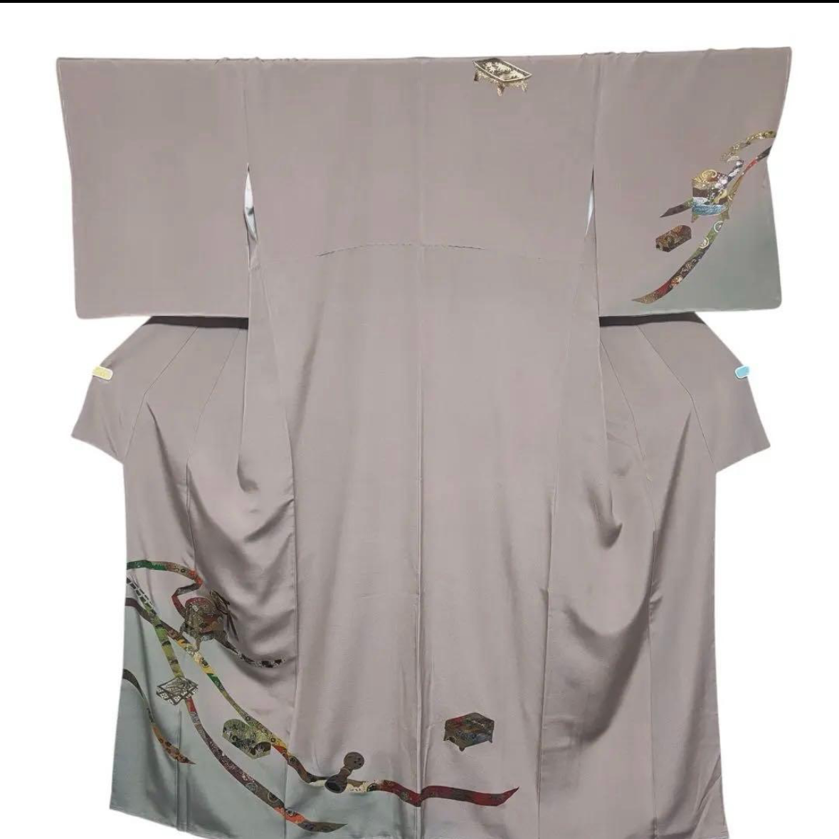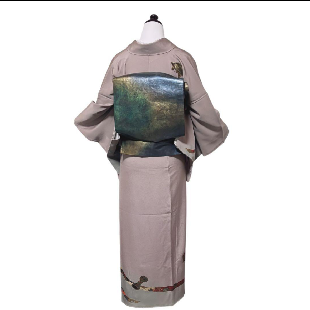 《着物》新品 美品 袷 正絹 螺鈿箔風 縮緬 訪問着 フルセット 4点 モダン 粋