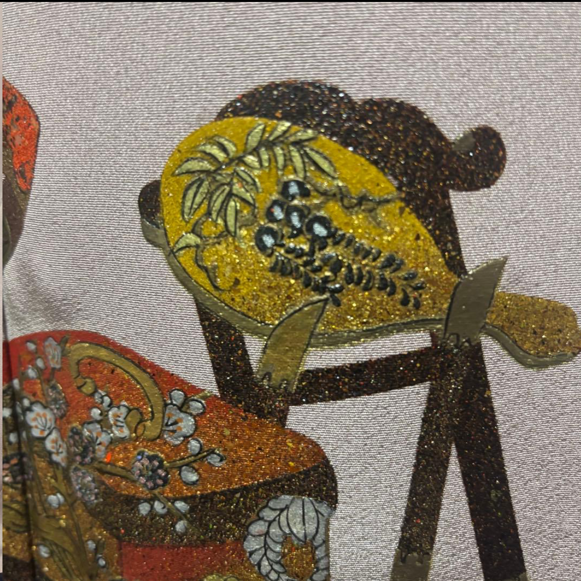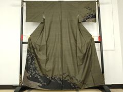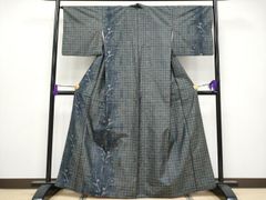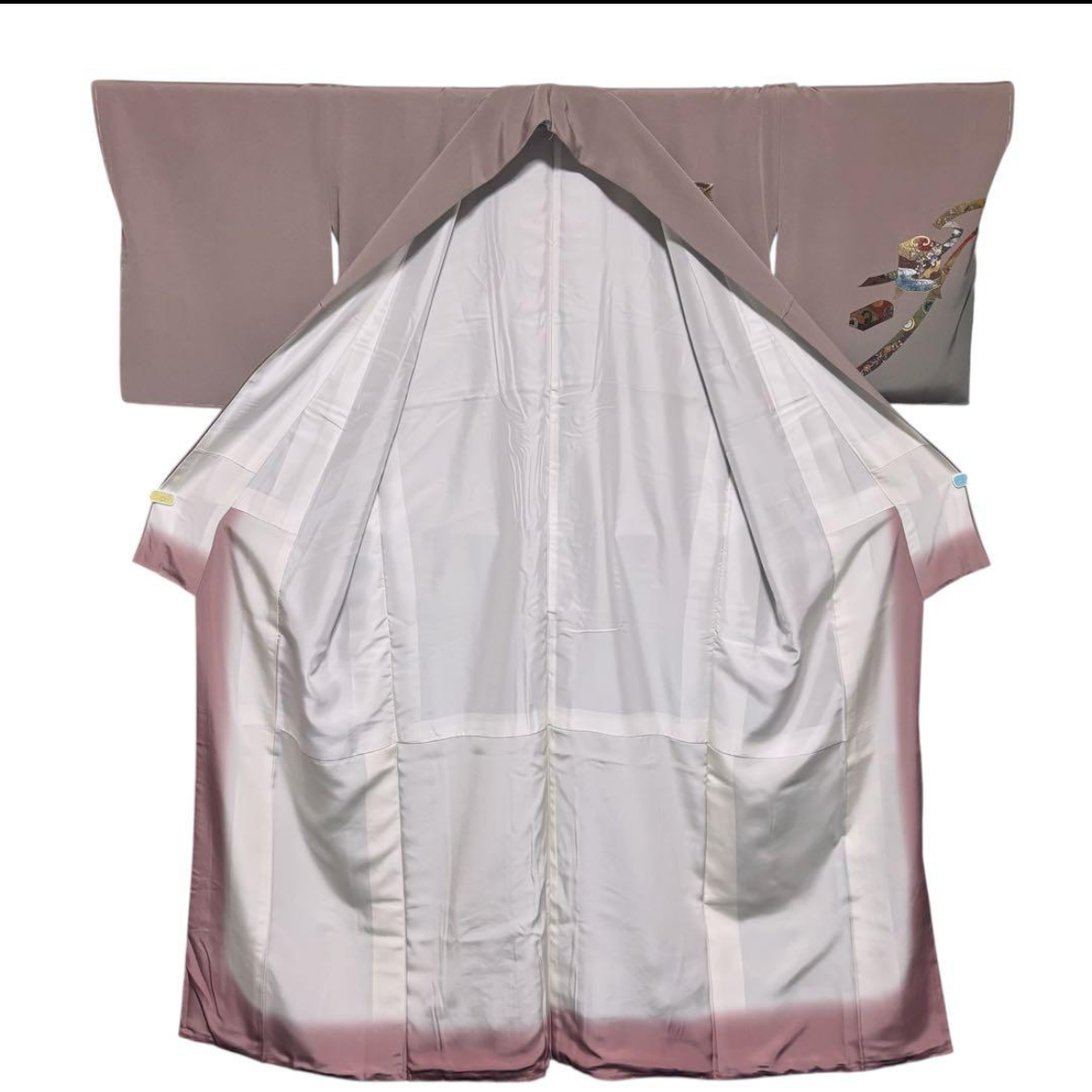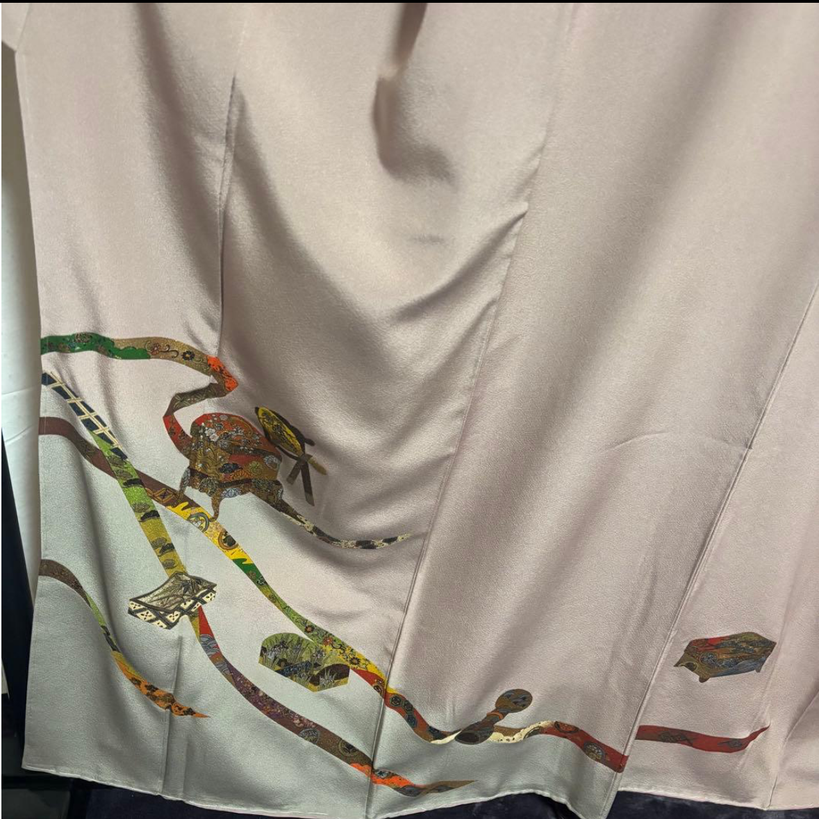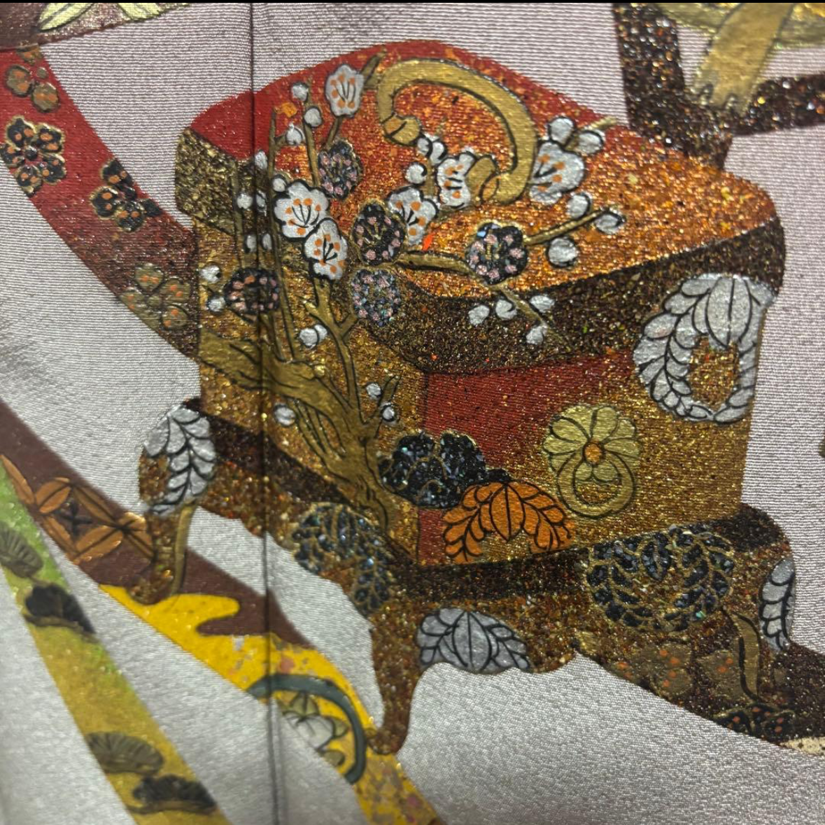 《着物》新品 美品 袷 正絹 螺鈿箔風 縮緬 訪問着 フルセット 4点 モダン 粋