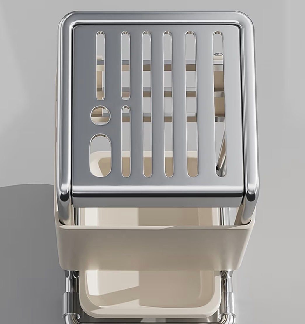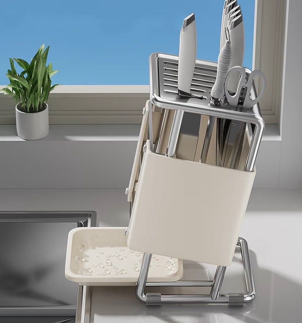 【清潔を保つ水受けトレイ】底部に取り外し可能な集水トレイを装備。包丁の水滴やシャープナー使用時の細かいくずをキャッチし、キッチンを清潔に保ちます。トレイは簡単に取り外して水洗い可能。