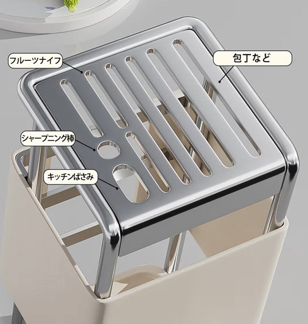 【倒れにくい安定設計】卓上用に設計された安定感のあるベース構造で、複数の包丁を収納しても倒れにくく安心。コンパクトサイズながら高い収納力を発揮します。