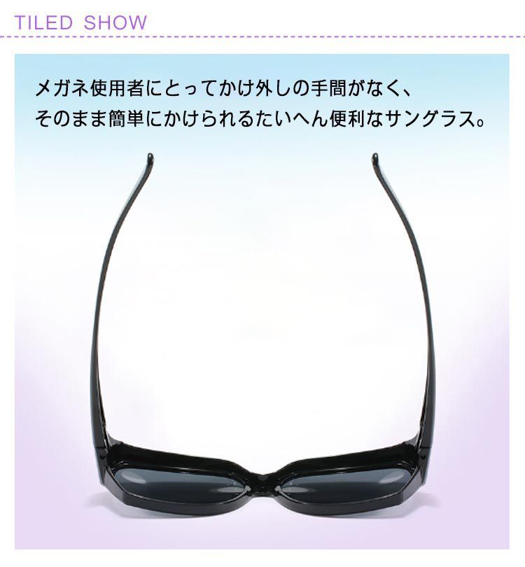 メガネ使用者にとってかけ外しの手間がなく、そのまま簡単にかけられるたいへん便利なサングラス。