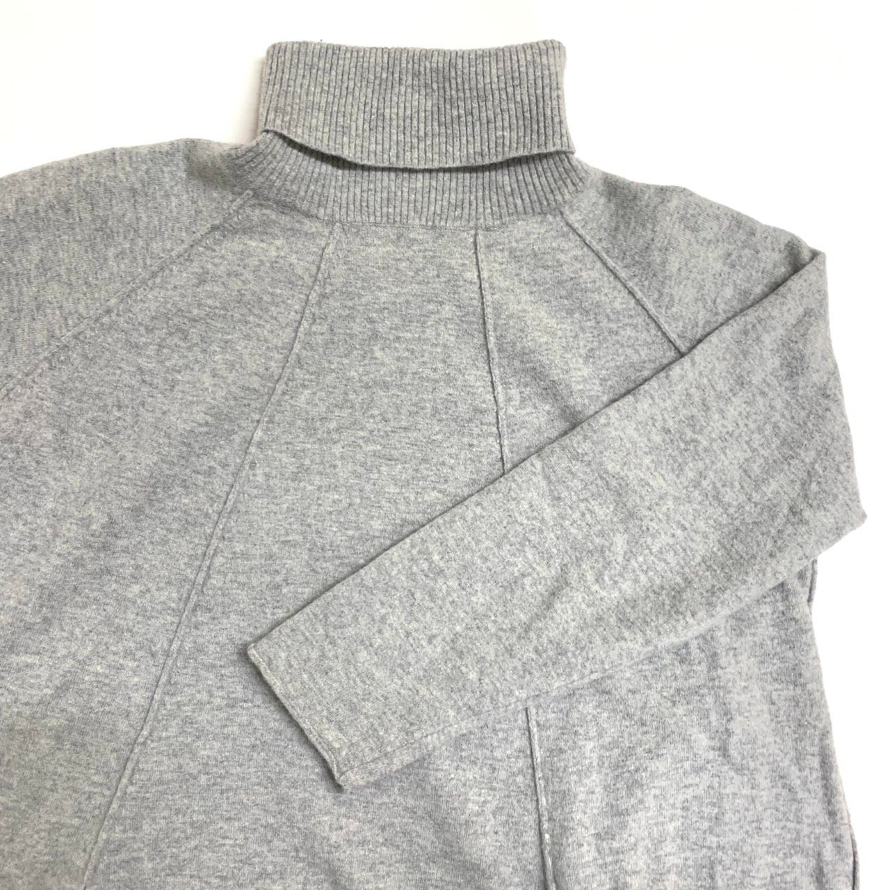 裾のスリットやデザインを施したAラインシルエットのタートルニットです。