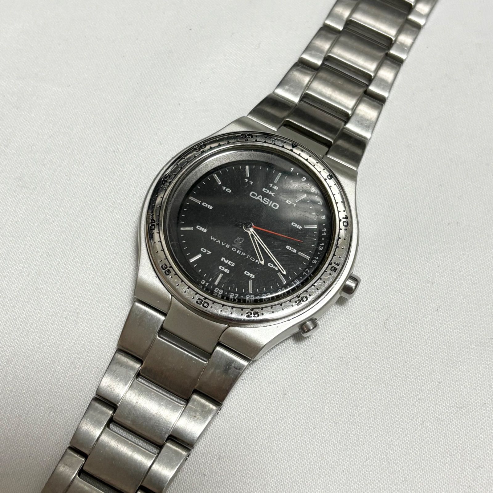 CASIO/カシオ/WAVE CEPTOR/ソーラー腕時計/ブラック×シルバー/動作未確認/中古品/ジャンク品扱い
