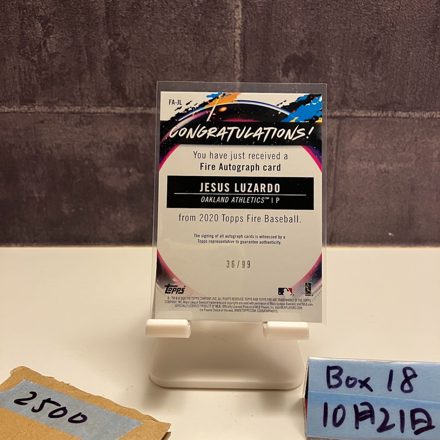2020 Topps Fire Jesus Luzardo 36/99 直筆サインカード OAKLAND ATHLETICS RC ルーキー Rookie
