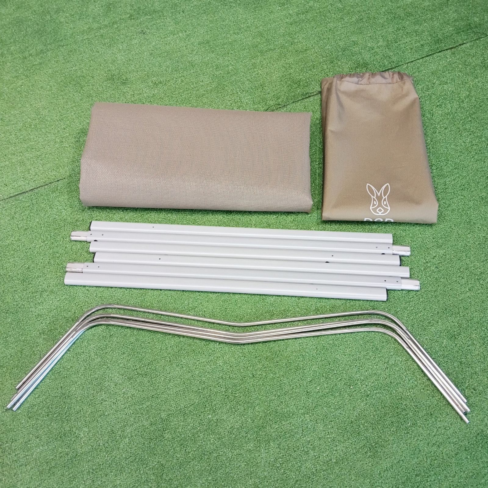 〇セット内容:ベッド生地、メインフレーム(中央)×2、メインフレーム(脚部)×4、脚部フレーム×4、キャリーバッグ