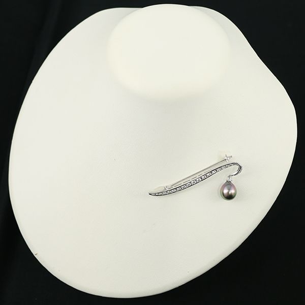 流れるような美しいプラチナラインへ総計1.05ctもの厳選ダイヤモンドをセッティング。瑞々しさ溢れる眩い輝きの先端には上質なテリを披露する彩美しいピーコック系カラーを纏ったブラックパールが揺れ煌めきを演出します。