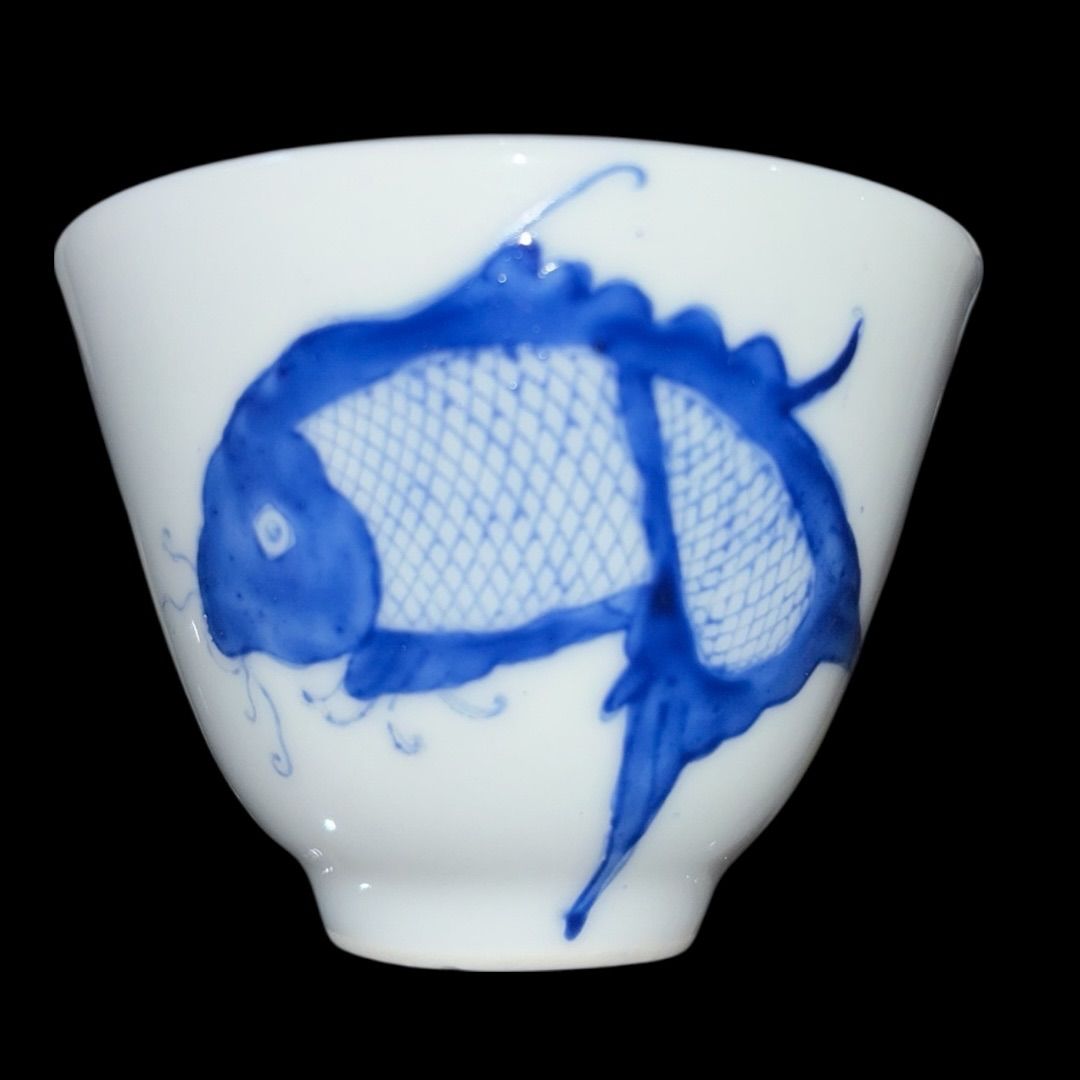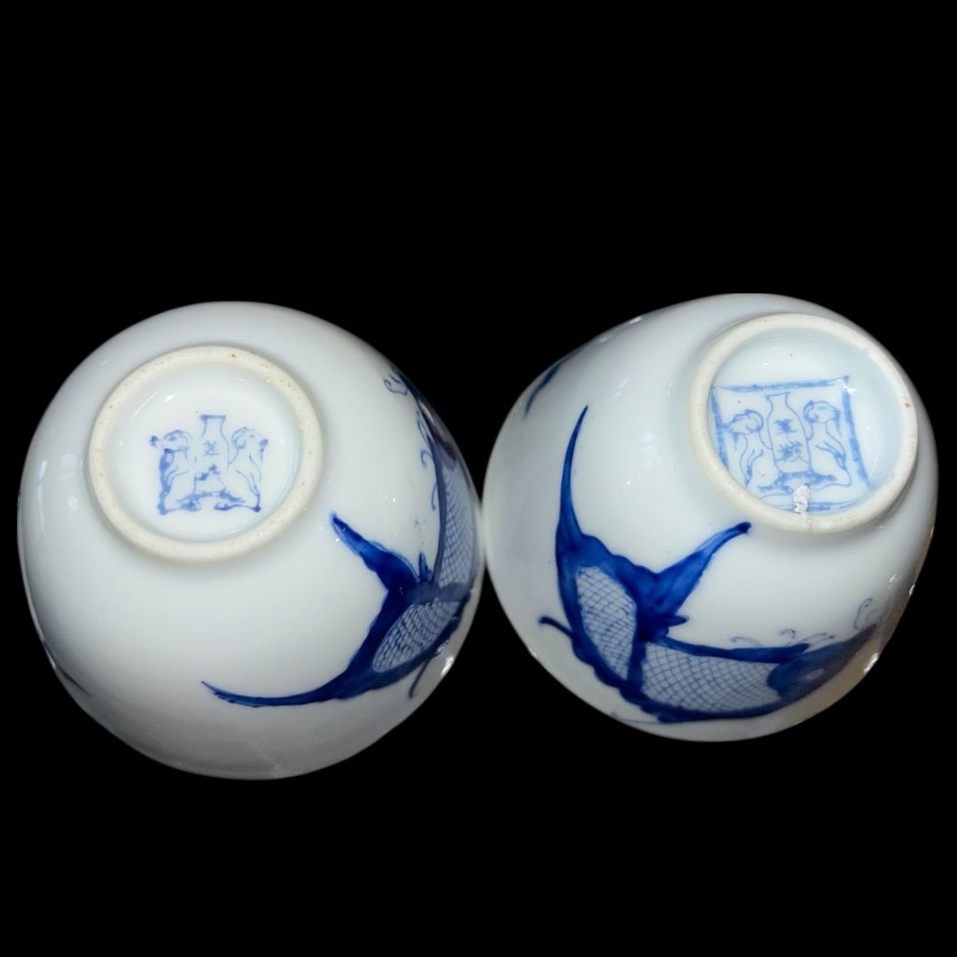 江戸時代後期 骨董 手描き 湯呑 鯛文 希少 お猪口 湯呑 ヴィンテージ 希少 初出し品