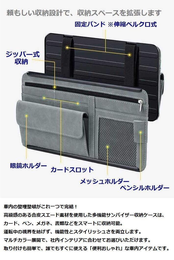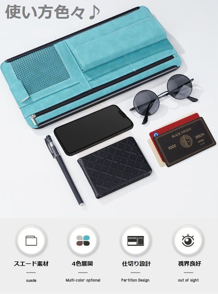 高級感のある合皮スエード素材を使用した多機能サンバイザー収納ケースは、