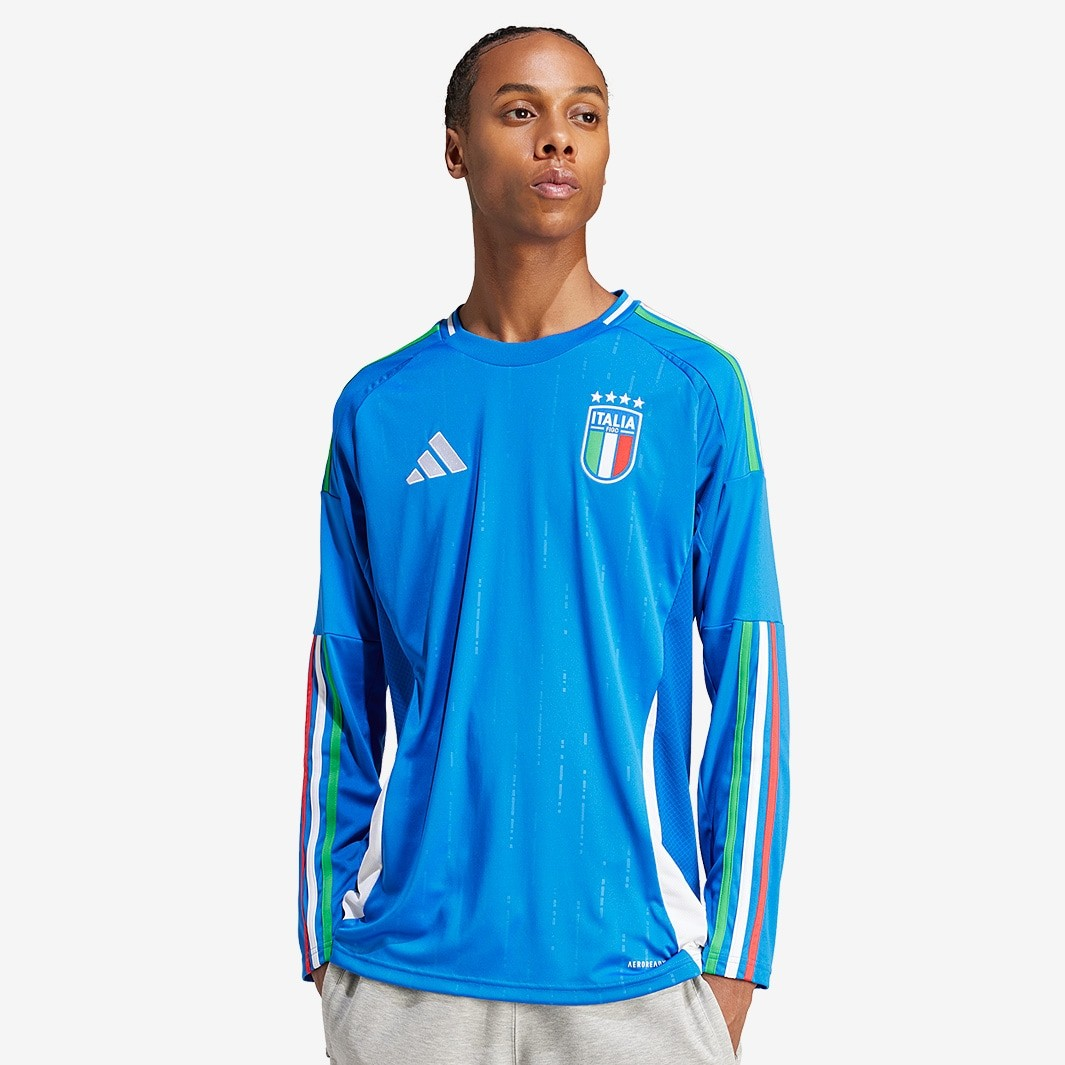 国際舞台の重要な試合でアッズーリを応援する、adidas イタリア 2024 長袖 ホーム シャツです。カラーはブルー。