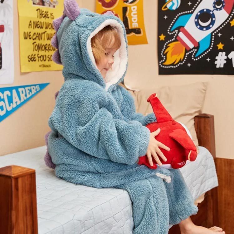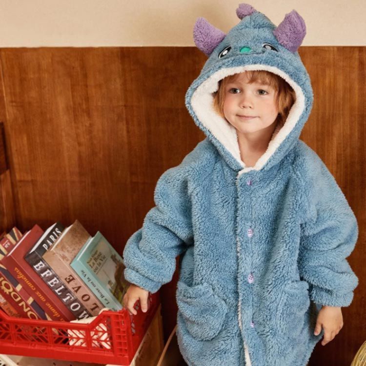 子供用バスローブが登場します。ふんわりとした柔らかい肌触りで、お肌に優しい着心地です。生地の内側も外側も同じ肌触りです。