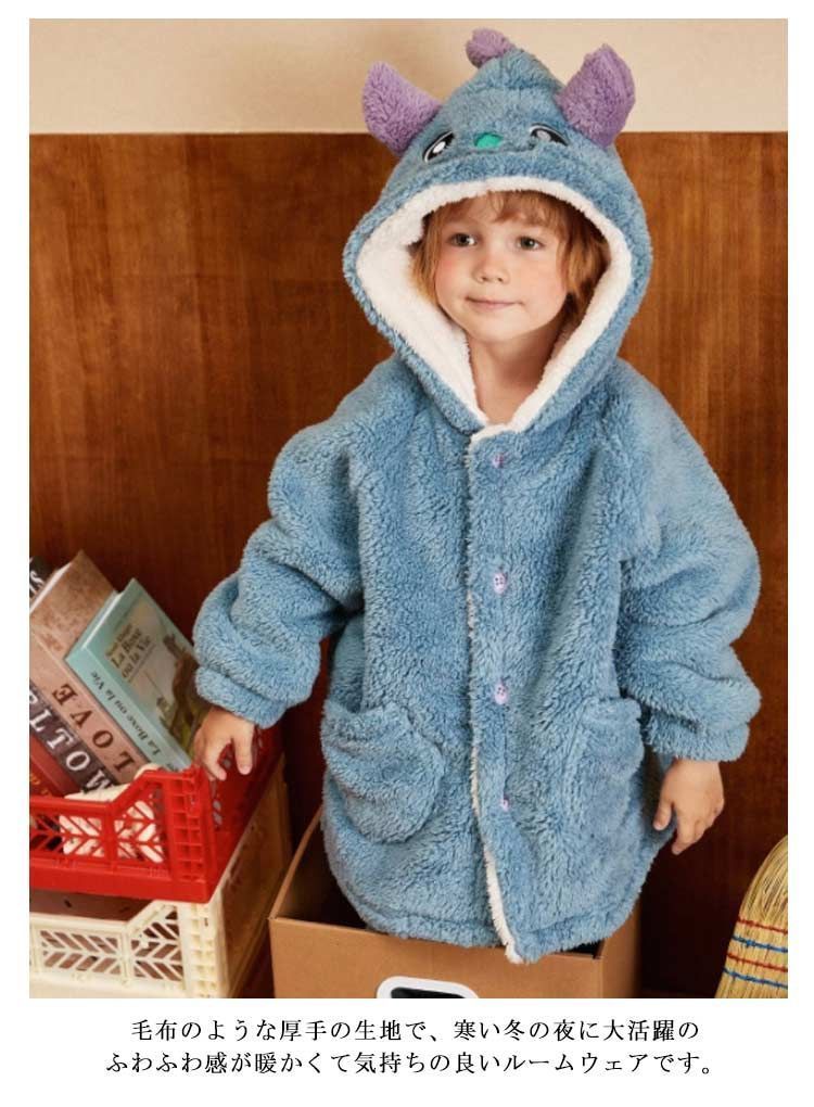 毛布のような厚手の生地で、寒い冬の夜に大活躍のふわふわ感が暖かくて気持ちの良いルームウェアです。