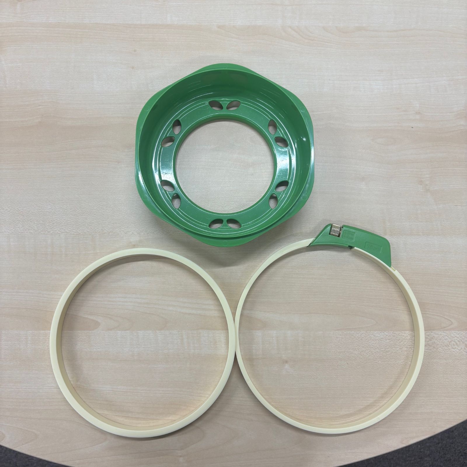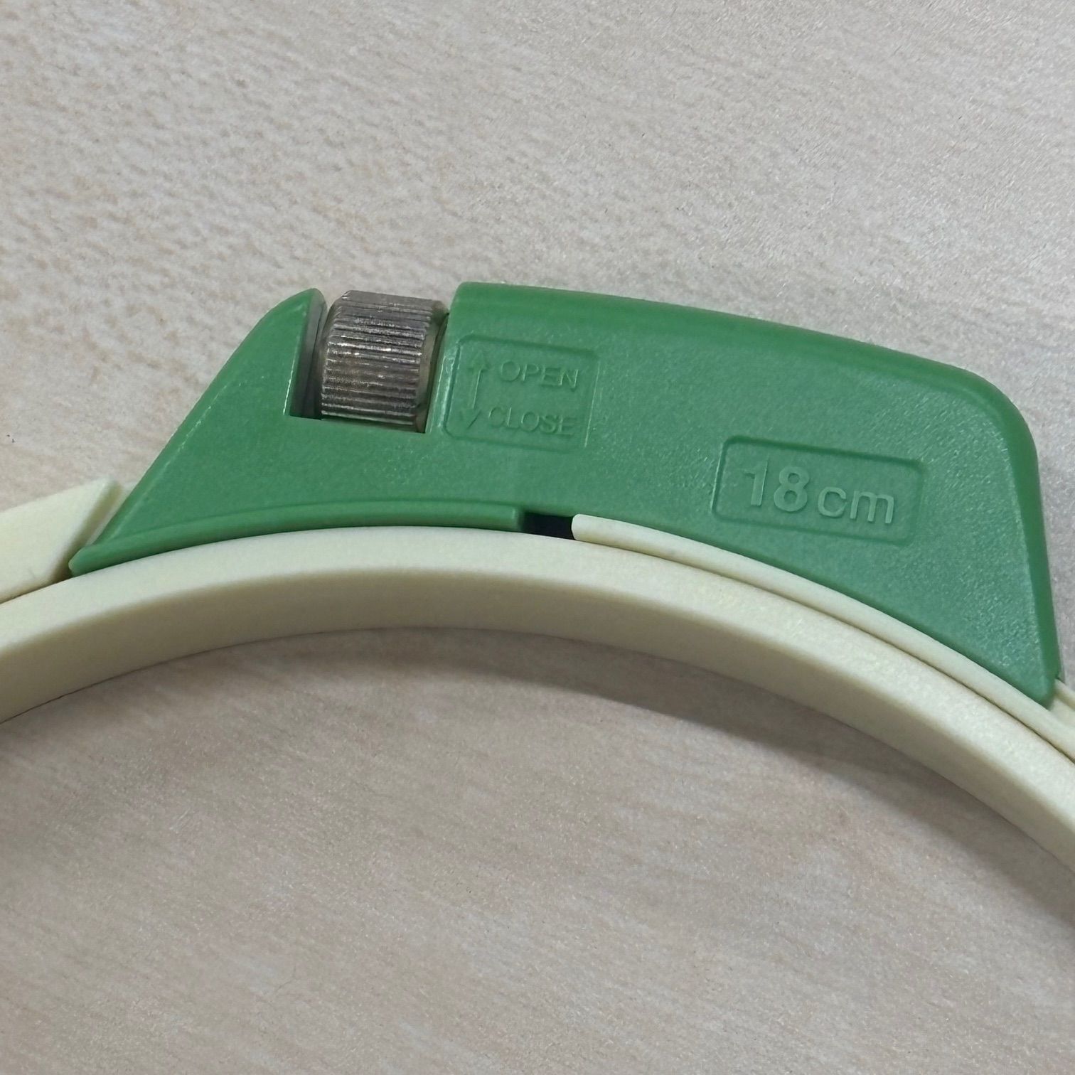 パンチニードルや刺繍作業に便利なフリーステッチングスタンドと、12cmサイズのフープのセットです。