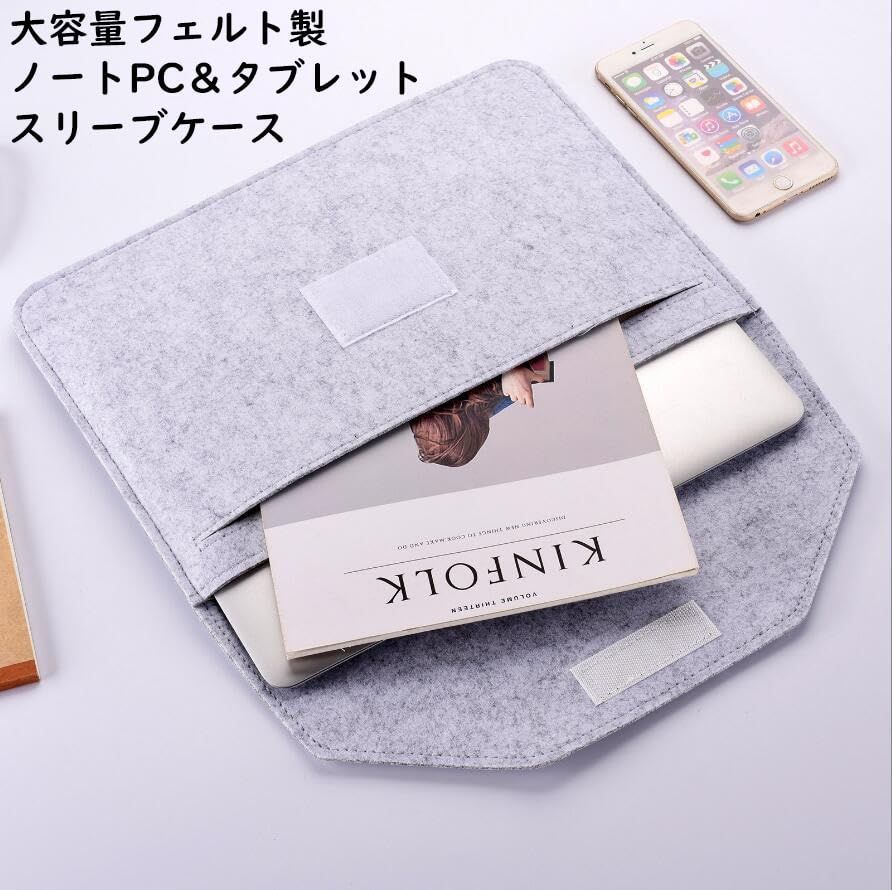 ノートパソコンスリーブケース 13インチまでに対応 フェルト製 ラップトップ インナーバッグ 薄型 ノートPC 収納ケース 耐衝撃 耐荷重 全面保護 タブレットPC ケース ダークグレー