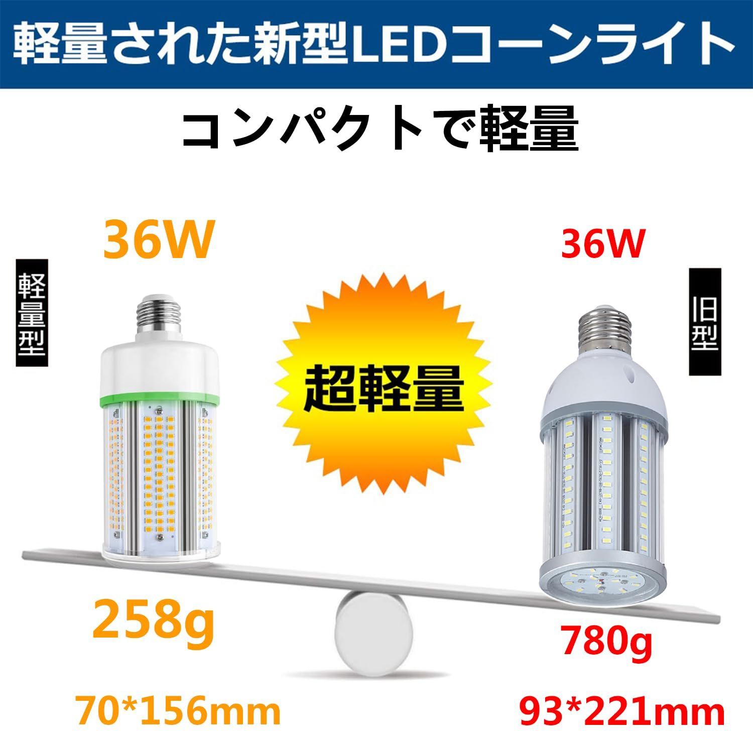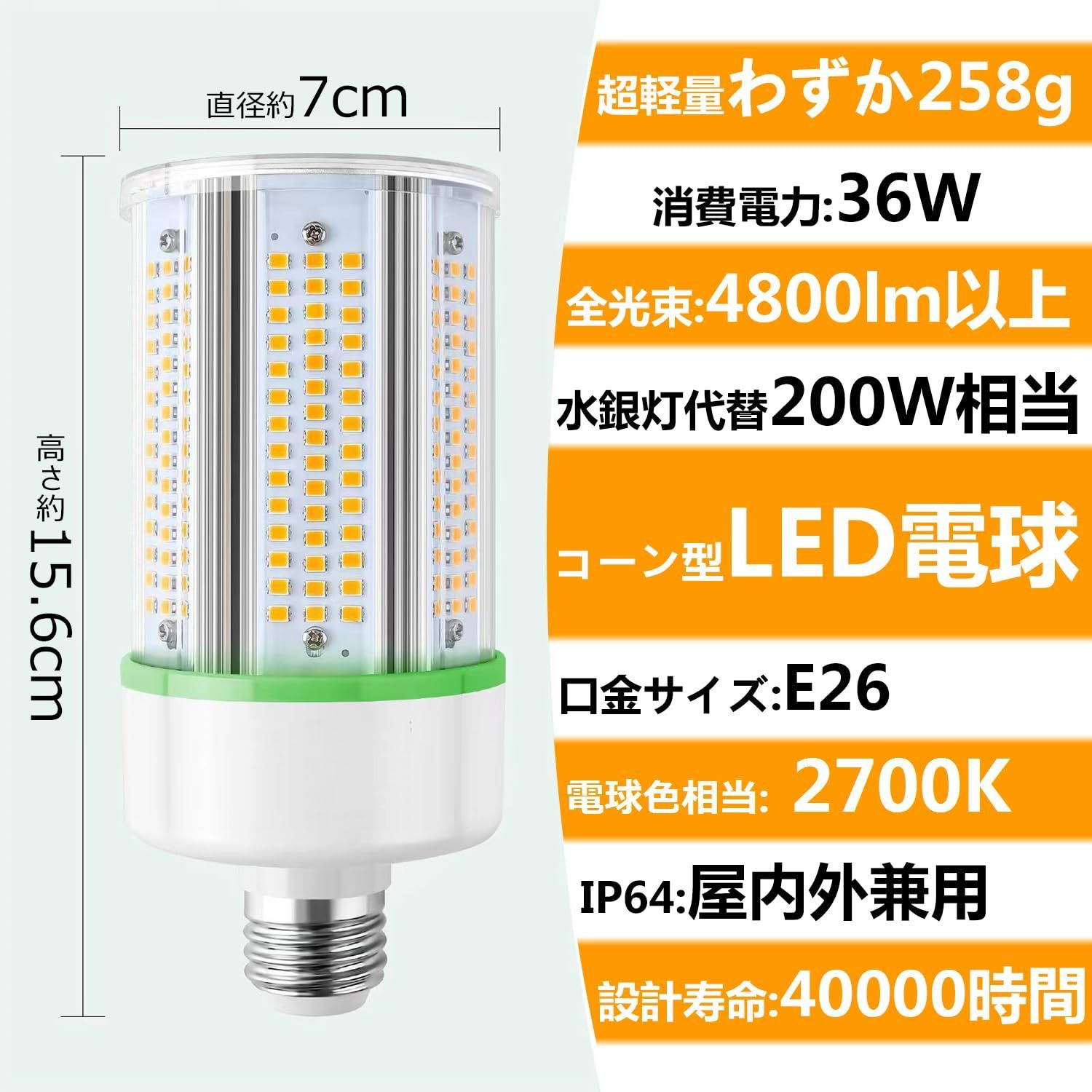 led電球 e26 200w 電球色相当2700K 36W 4800LM 軽量型 LED街灯 LEDコーンランプ 200W-250W水銀灯/水銀ランプ相当 1個セット (電球色, 36W)