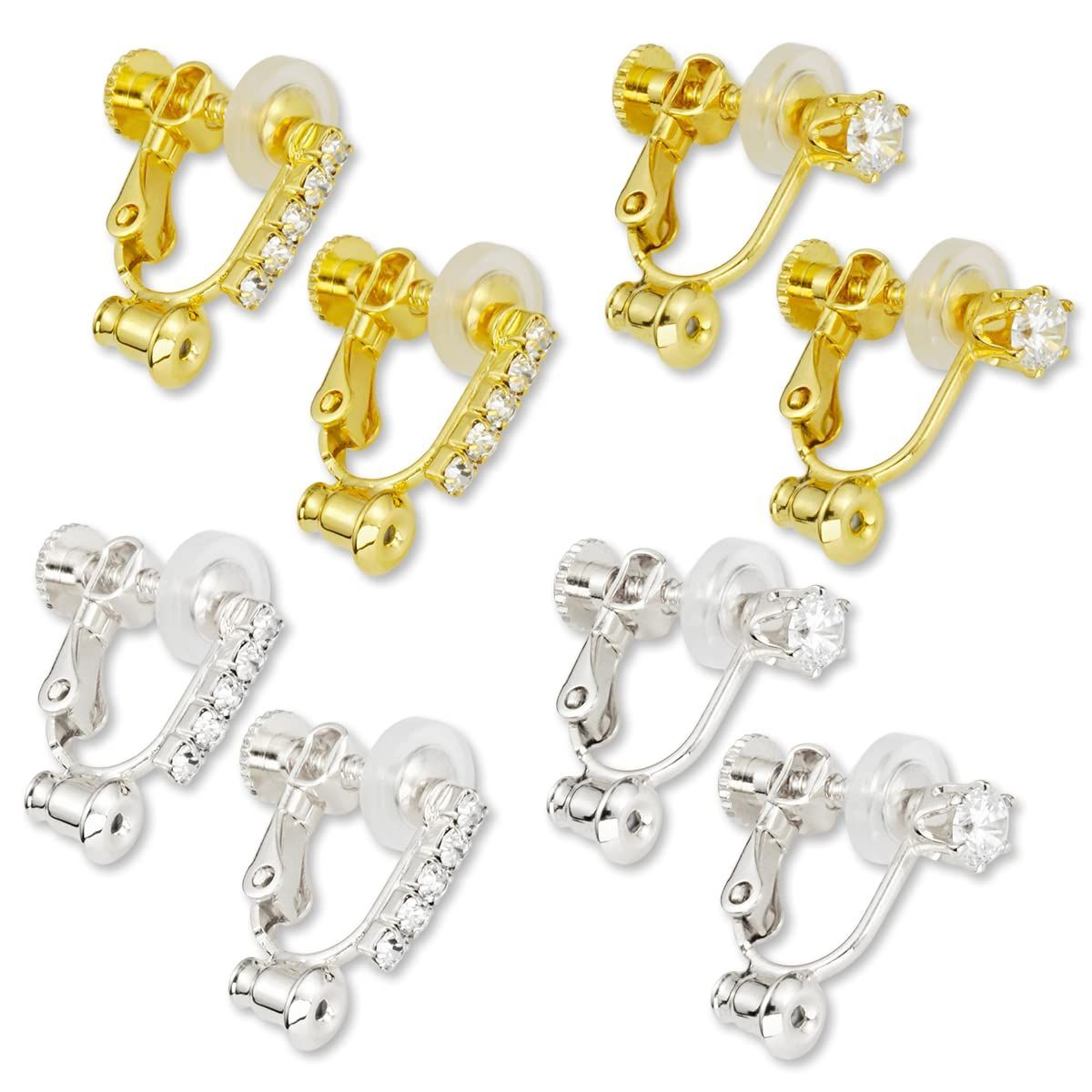 イヤリングコンバーター ネジ式 横型 ラインストーン付き ゴールド シルバー 2種4ペア