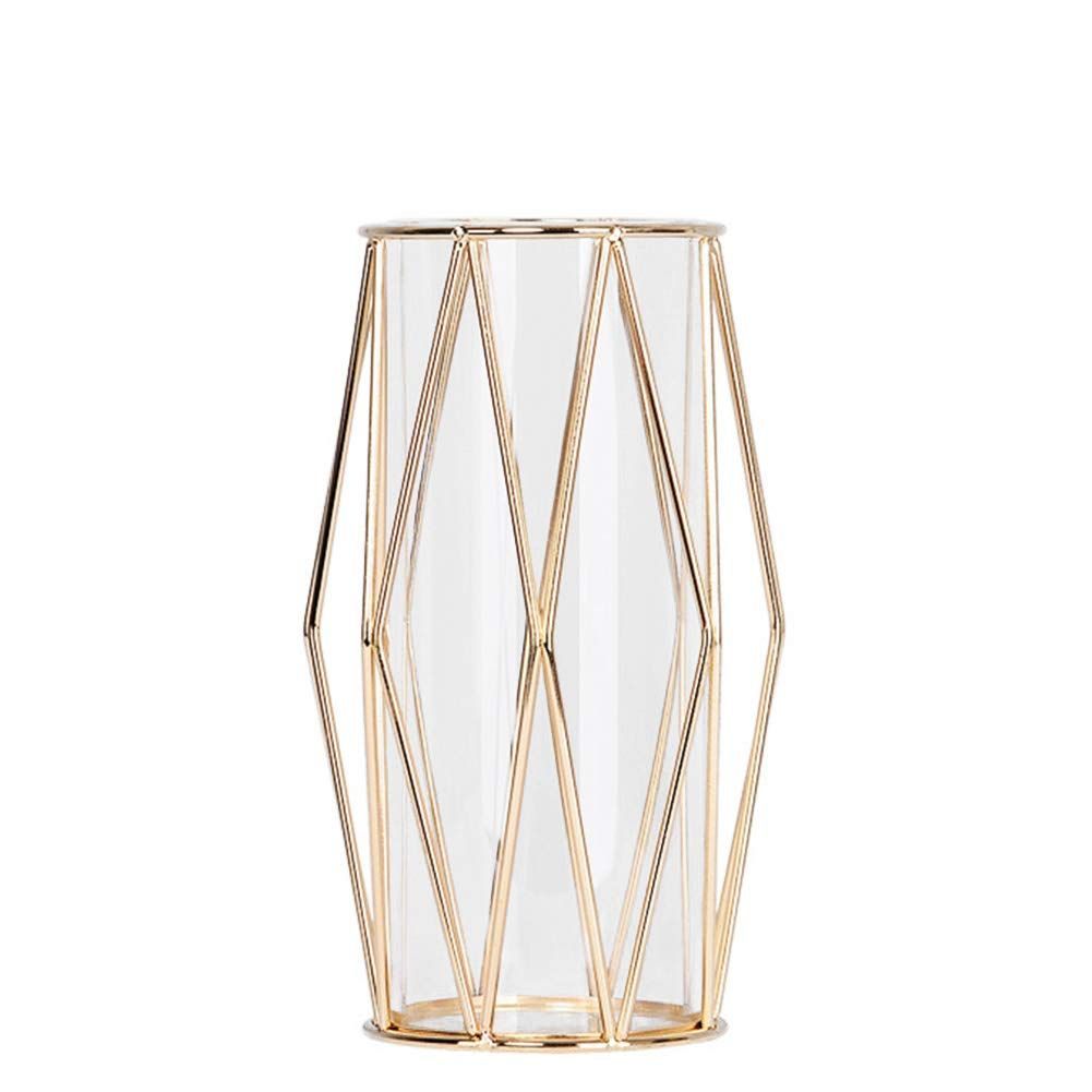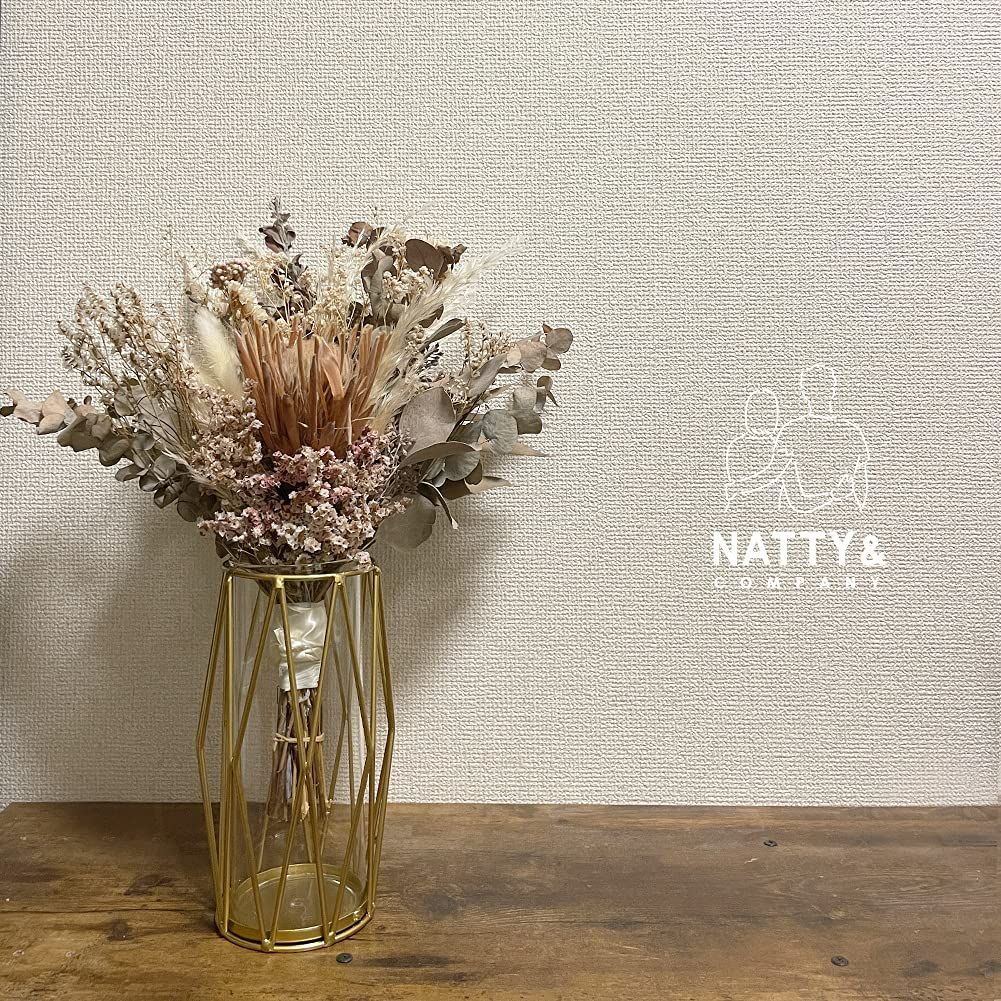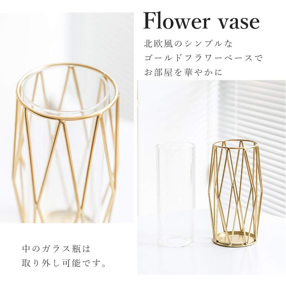 異素材の組み合わせの新しいフラワーベース。北欧風のシンプルデザインですので、部屋のどこに置いてもすんなりと馴染みます。菱形のメッキ仕上げの鉄フレーム×ガラスの異素材の組み合わせがおしゃれ。ガラスの容器と鉄のフレームを分離することができ、ガラスの容器を取り出すと、植物に水を換えることが簡単です。生け花やドライフラワーなどを飾ればお部屋が華やかになります。