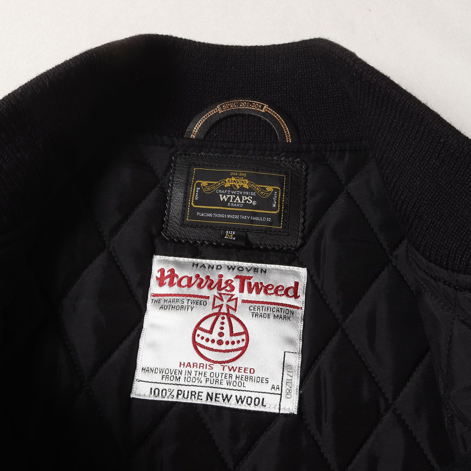 “Harris Tweed(ハリスツイード)”社のメルトンウール生地を使用したバーシティジャケットです。ポケット口にレザーをあしらい、無地で仕上げたシンプルなデザインになります。