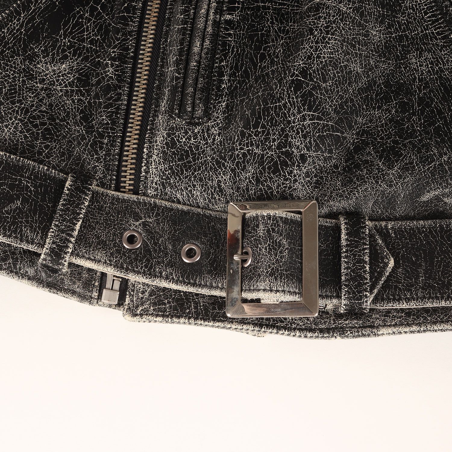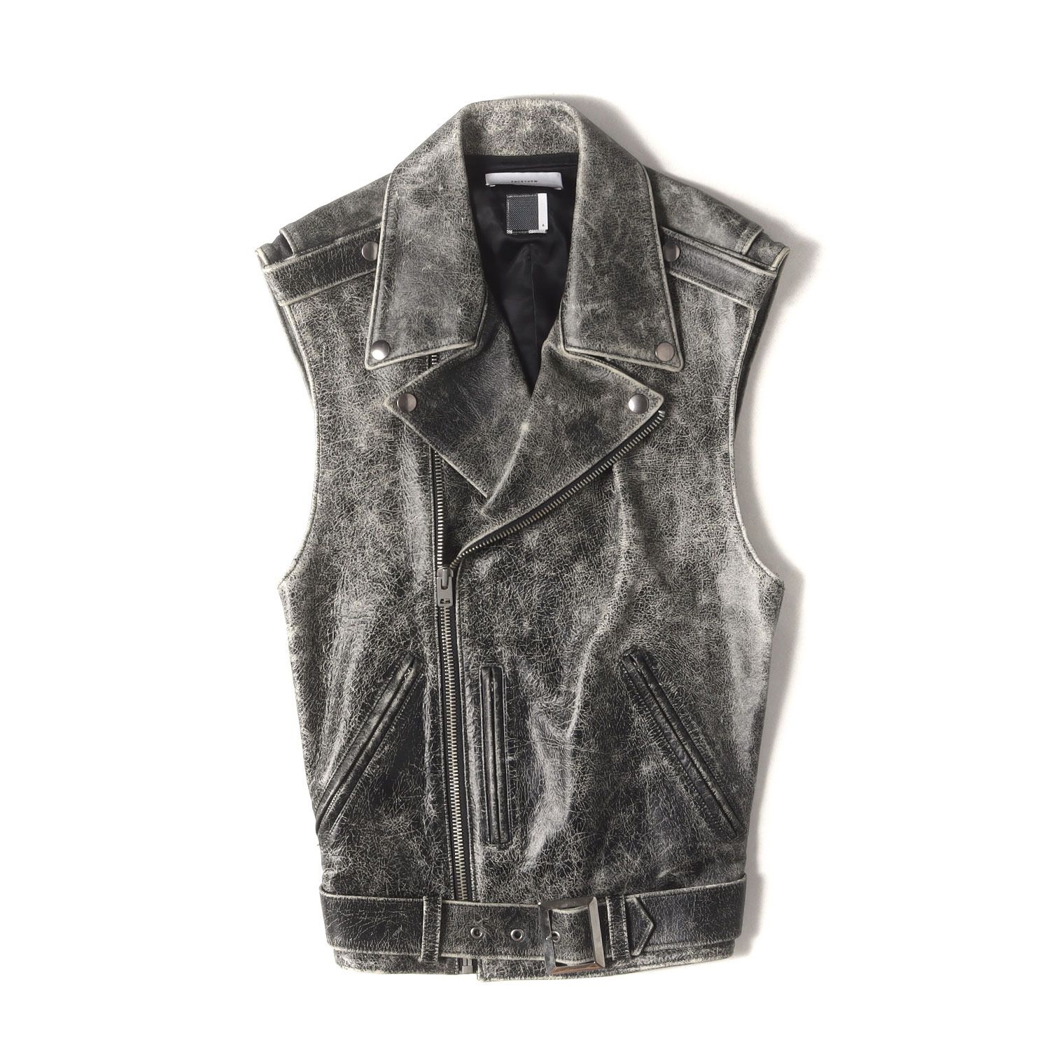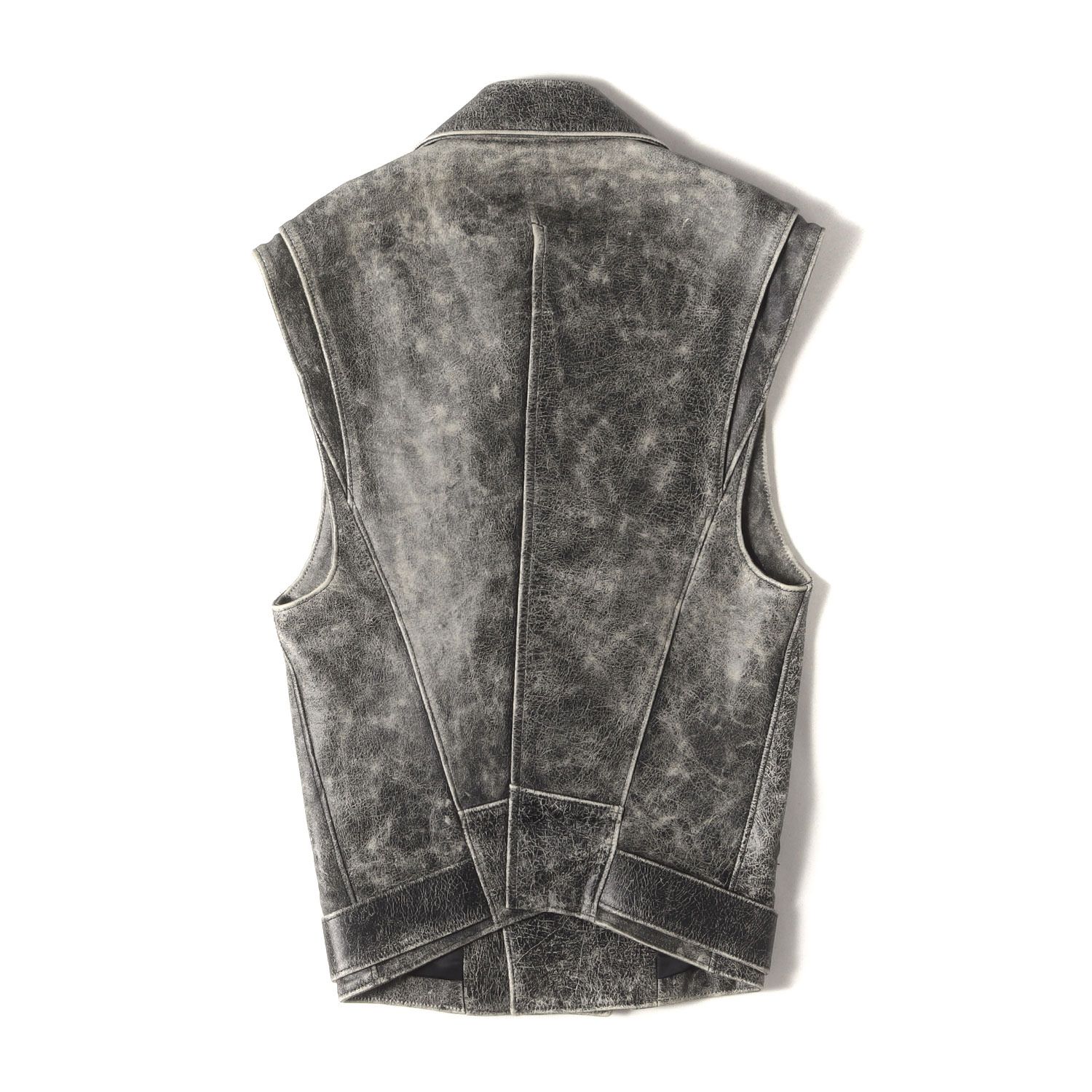 クラック加工のカウレザーで仕上げたダブルタイプのライダースベストになります。