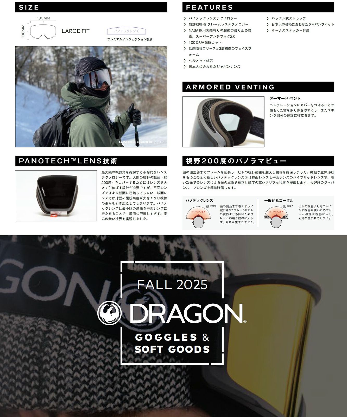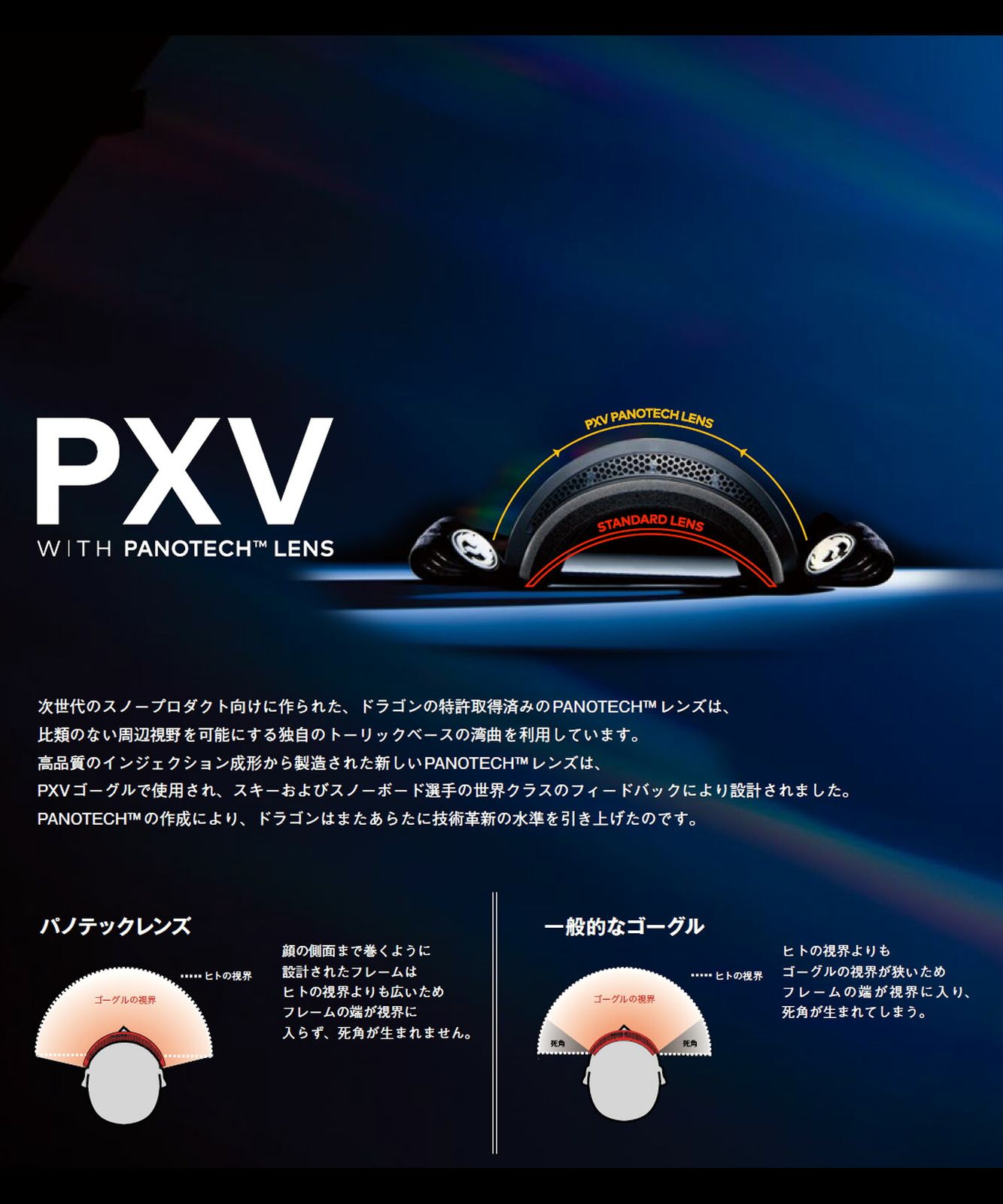 人間の視野角200度をカバーする「パノテックレンズ」を採用した、DRAGONのベストセラーモデル「PXV」。
