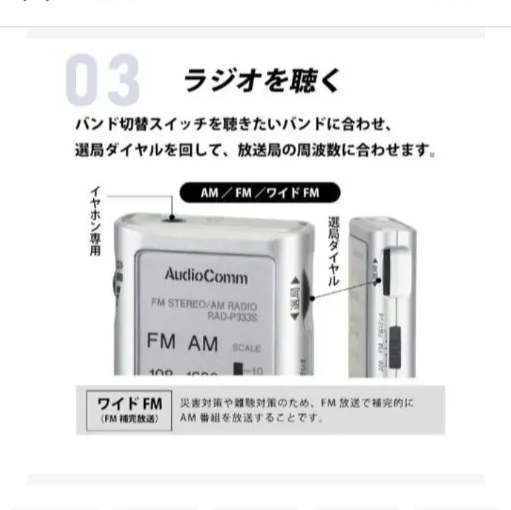 ■ 受信周波数:AM530~1605kHz、FM76~108MHz