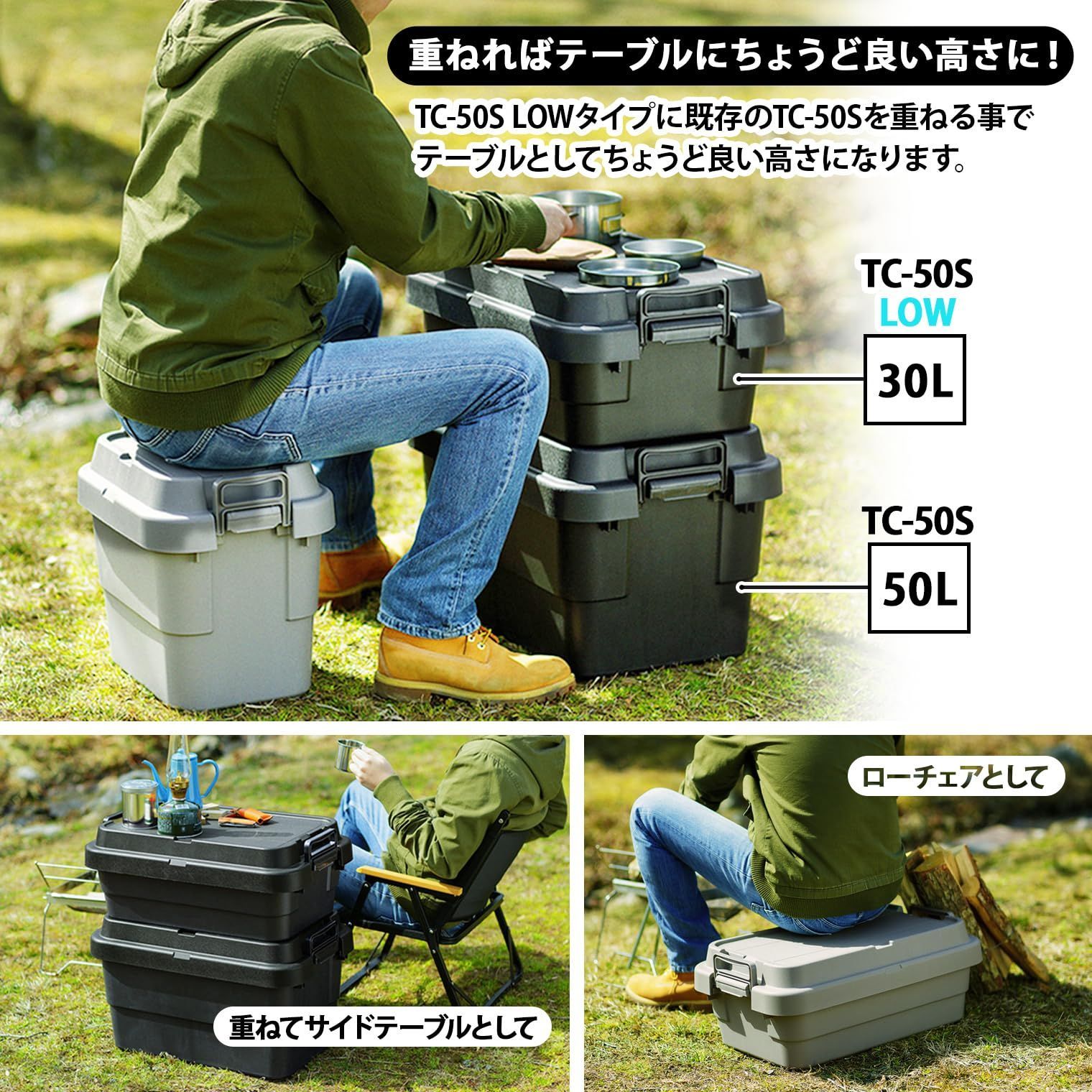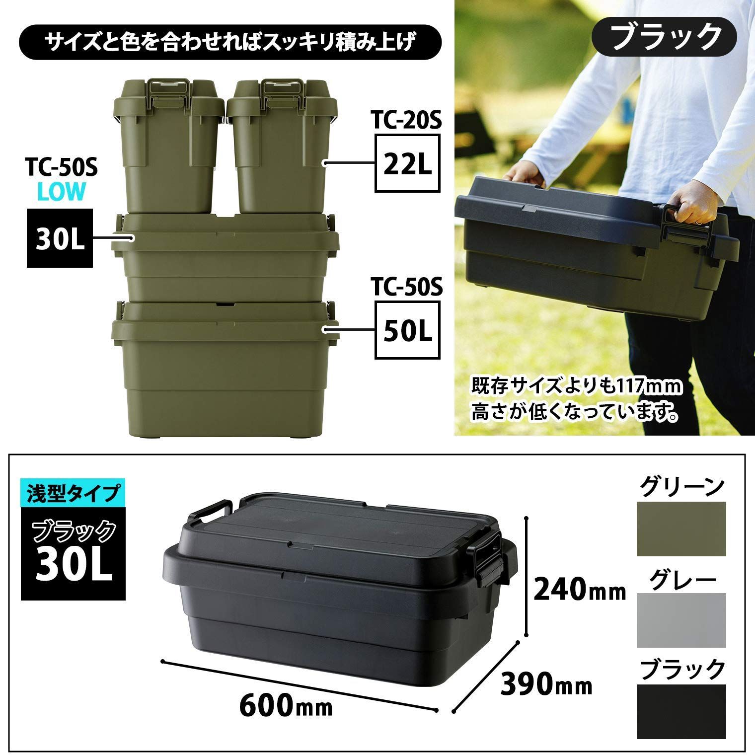 リス(RISU) 収納ボックス トランクカーゴ 30L ブラック 日本製 TC-50S LOW コンテナ ボックス スタッキングロータイプ屋外収納 キャンプ 防水 GHON135