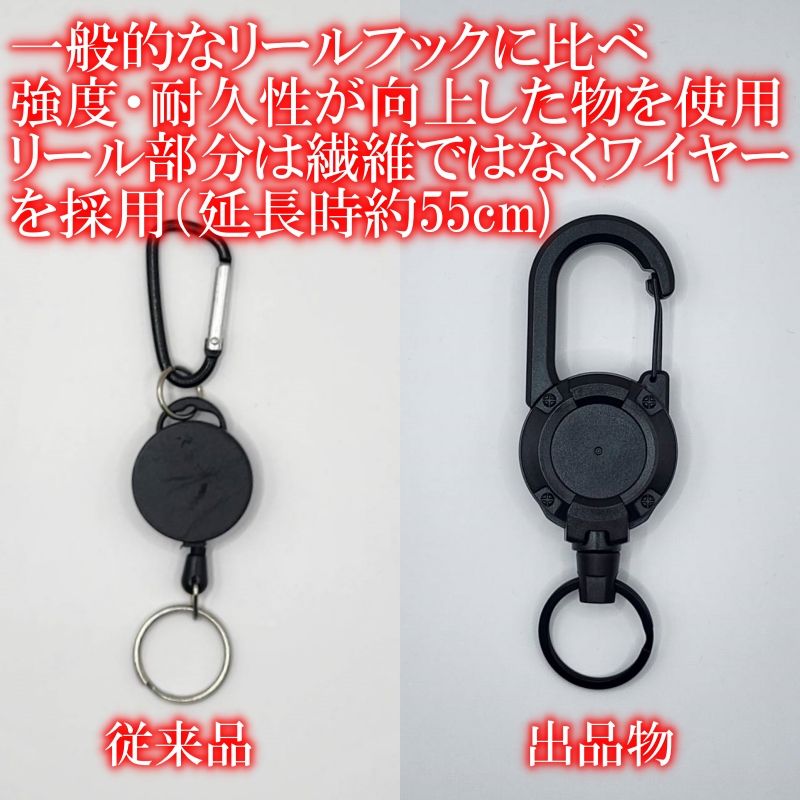 バッグに付けたまま脱着可能なリールフックもお付けします。