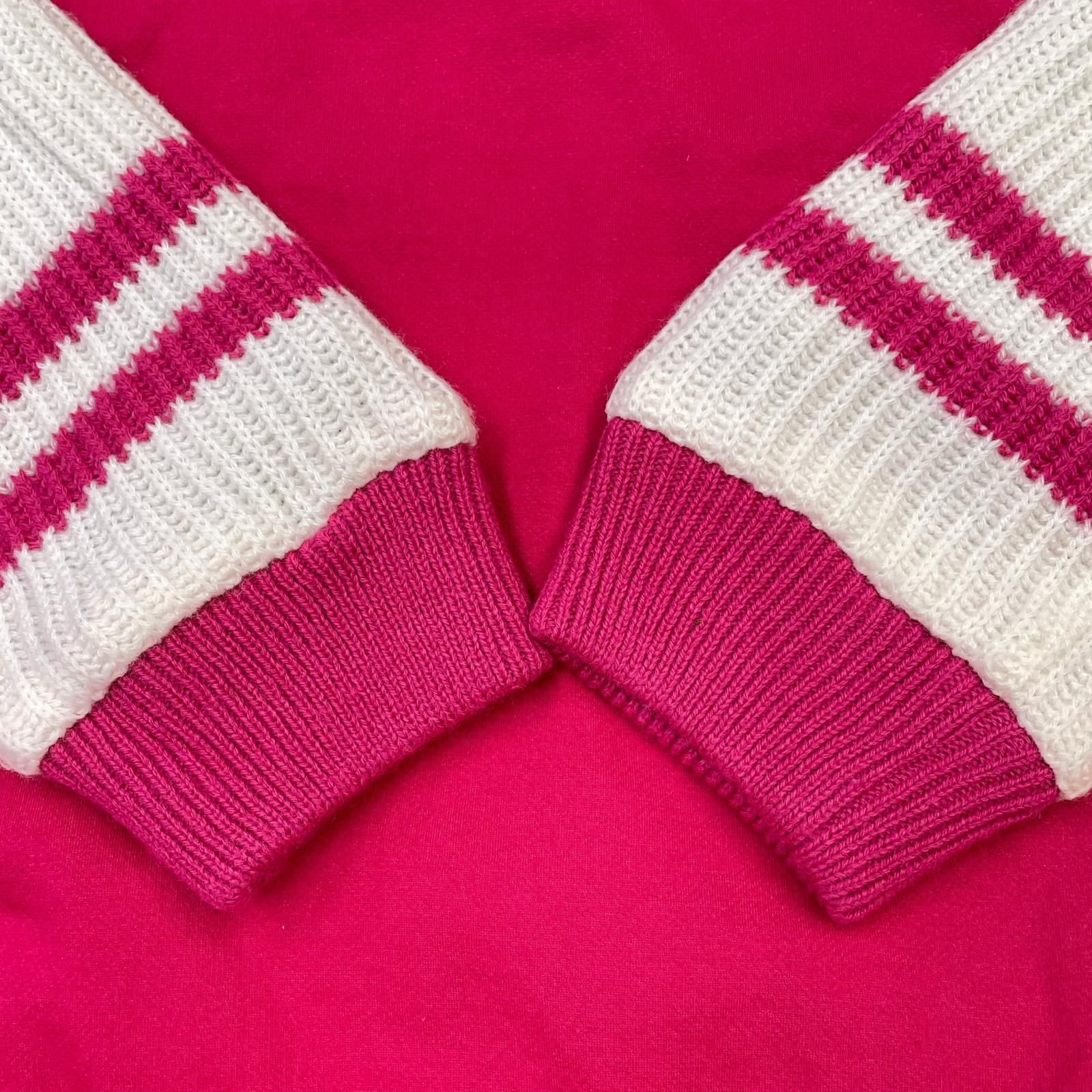身頃はコットン混の裏起毛、袖部分はウール混ニットで防風裏地付きの二重構造です