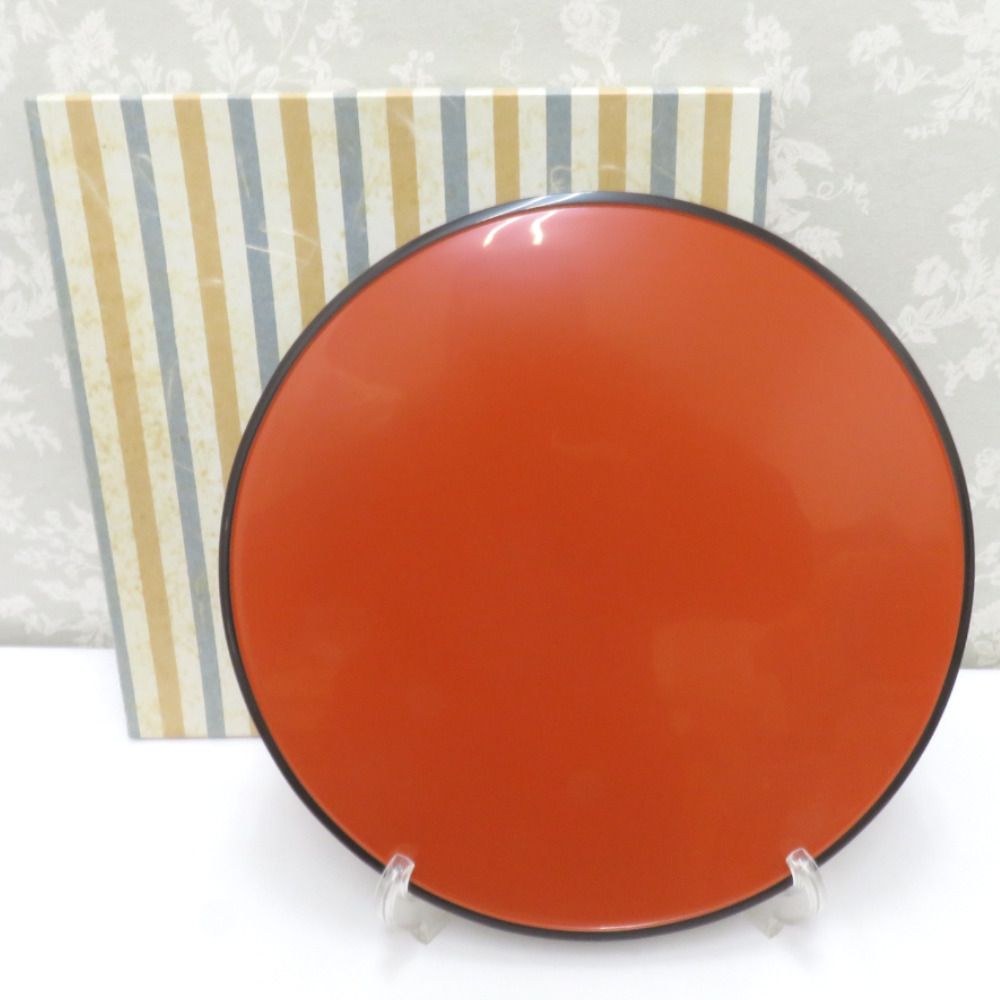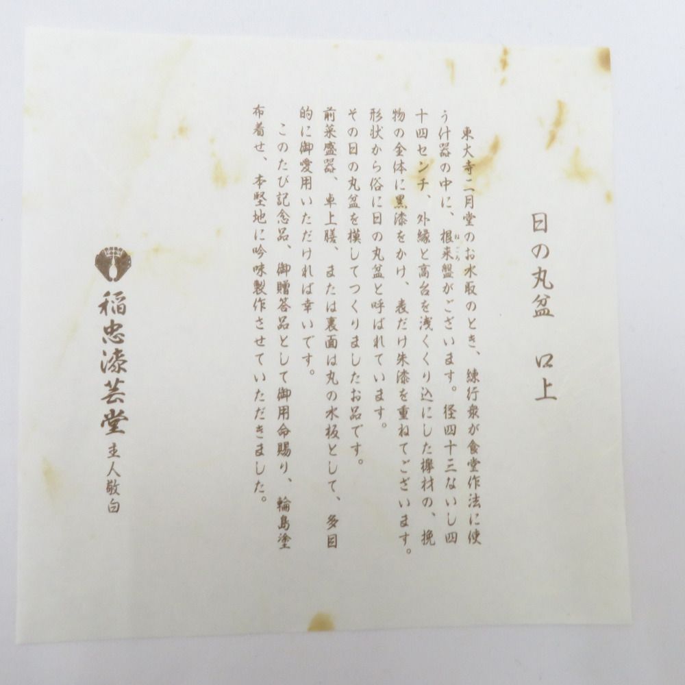 骨董・民芸品 輪島塗 稲忠漆芸堂 日の丸盆 お盆 漆器 無地 能登輪島 漆芸 箱有