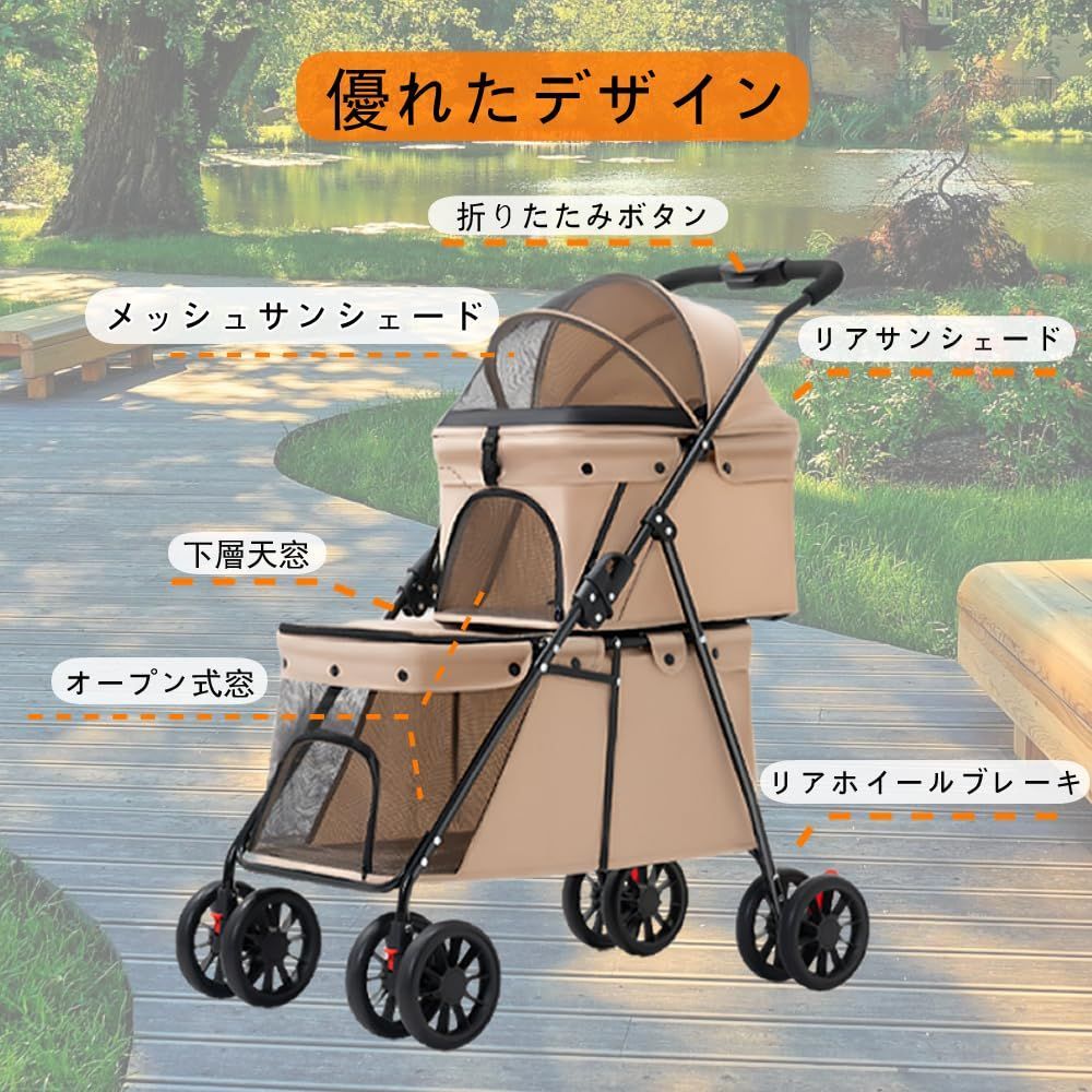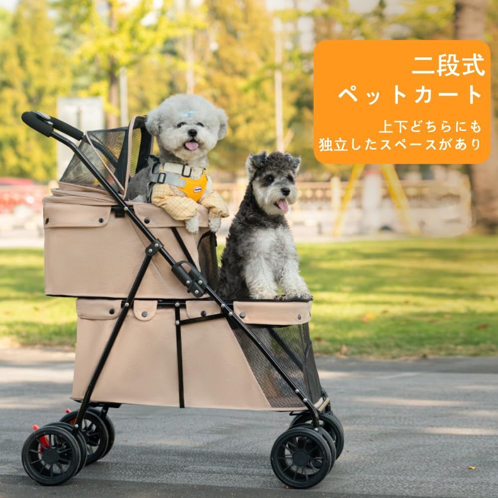 ペットカート犬 バギー 多頭 上下2段式 小型犬 中型犬 猫 ワンタッチ 折り畳み コンパクト 4輪 前輪360°回転 後輪ブレーキ付き 耐荷重25KG 上段10KG 下段15KG 多頭飼い対応 お出かけ 散歩 通院 介護用 収納便利 軽量 犬用ベビーカー 組み立て簡単 (ブラック 耐荷重 上段10KG 下段15KG)