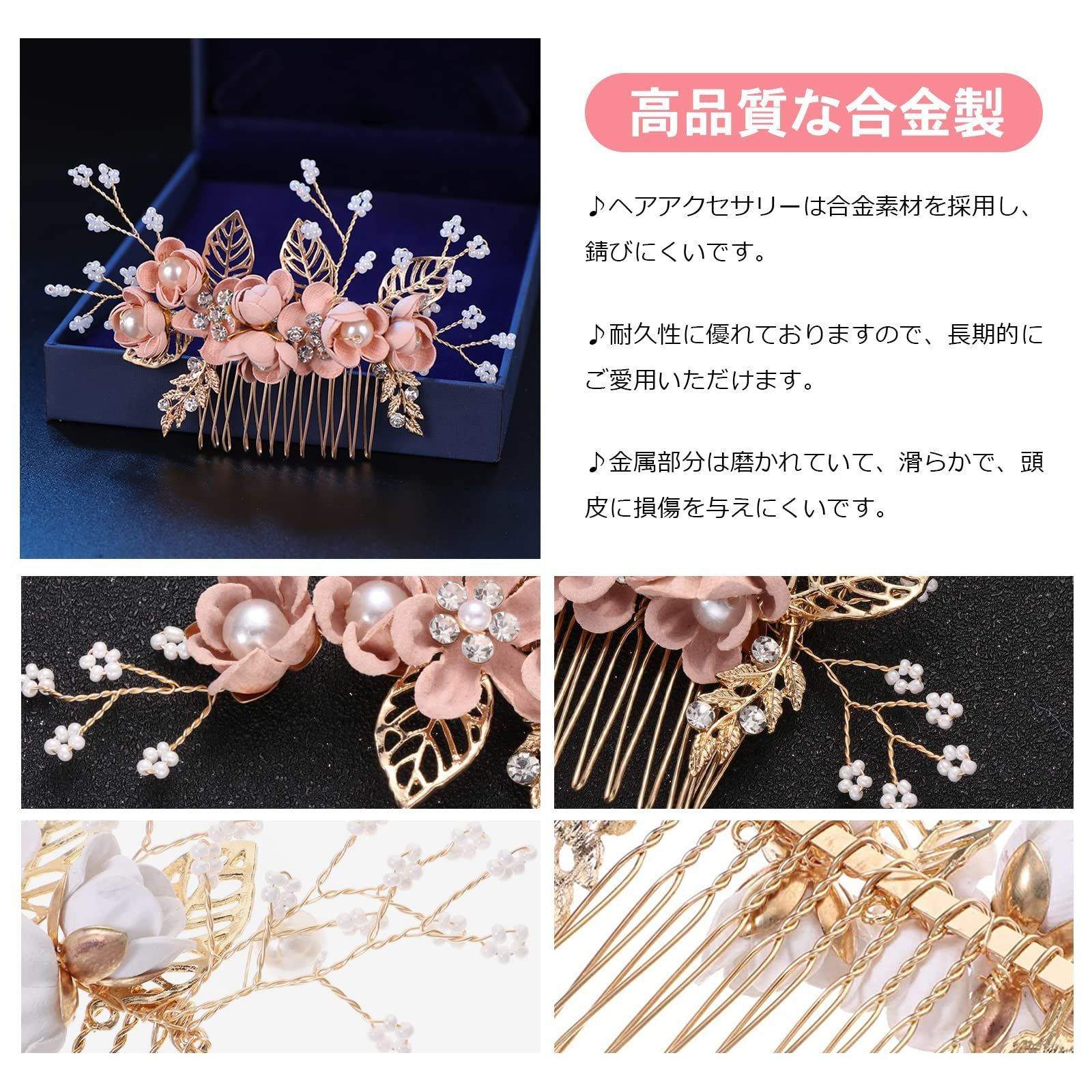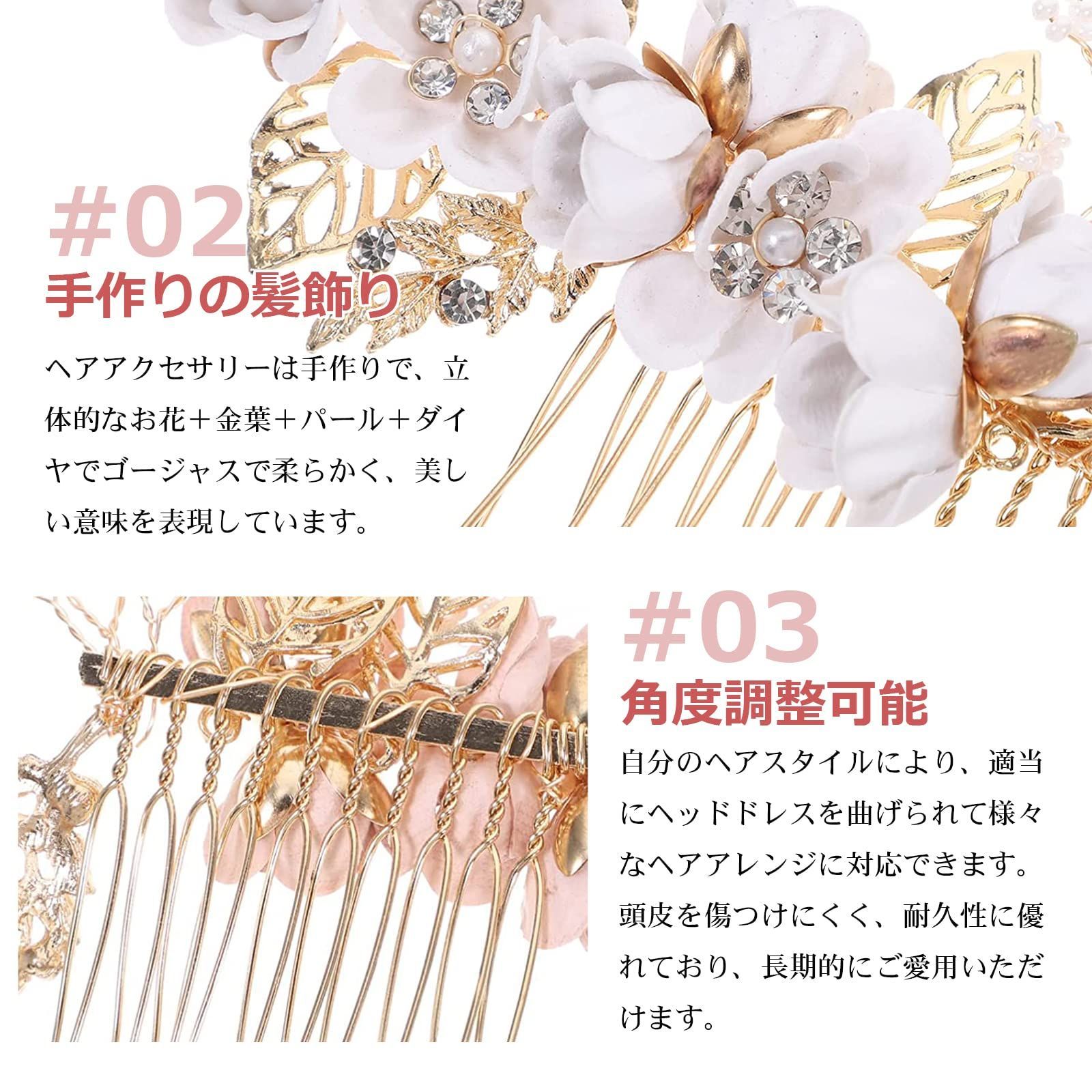 [PureSino] 髪飾り ヘアアクセサリー ヘッドドレス 花 パール ヘアピン 和装髪飾り 3点セット フラワー コーム Uピン ヘアピン ウェディング 成人式 七五三 パーティー 披露宴 卒業式 入学式 和装 ヘアアクセサリー