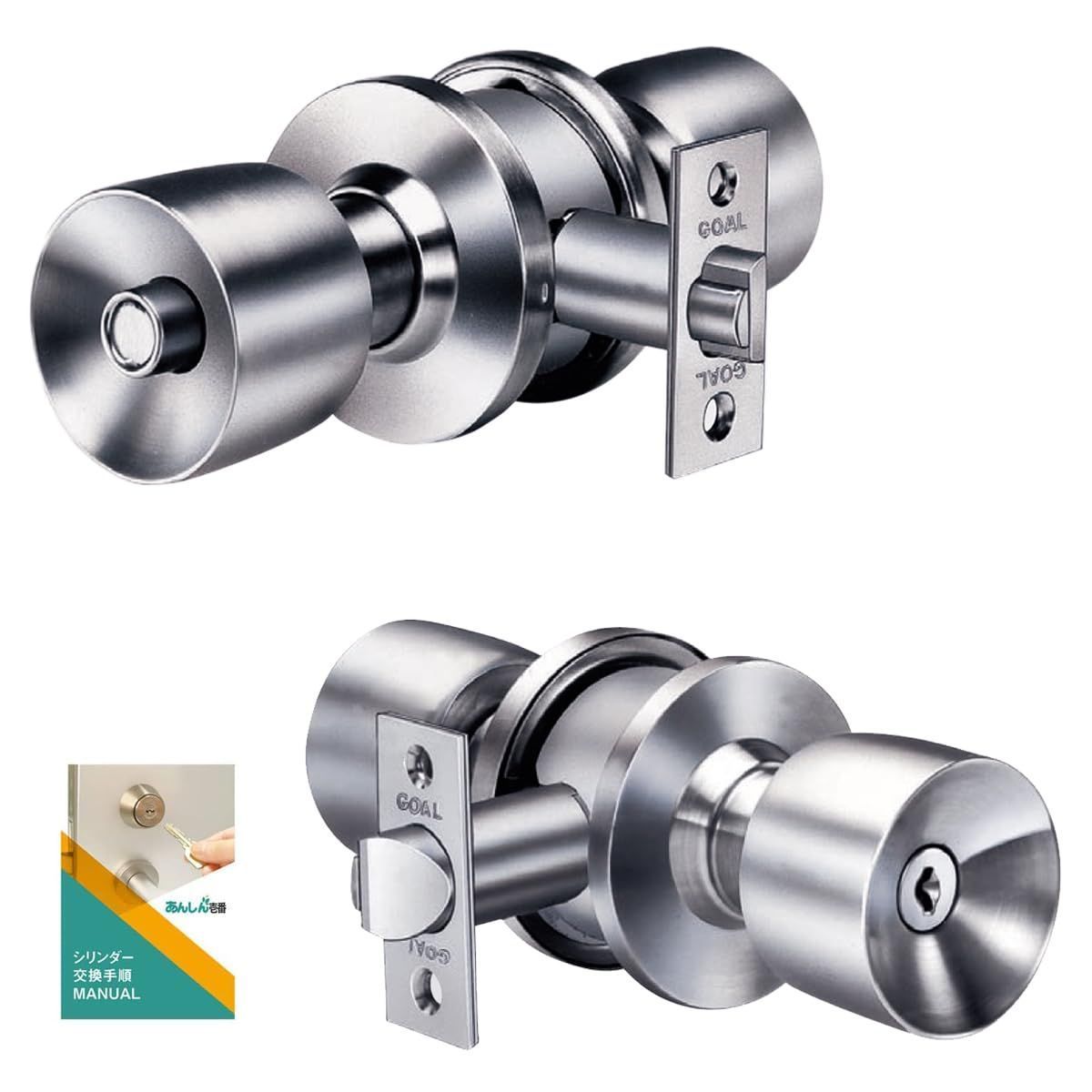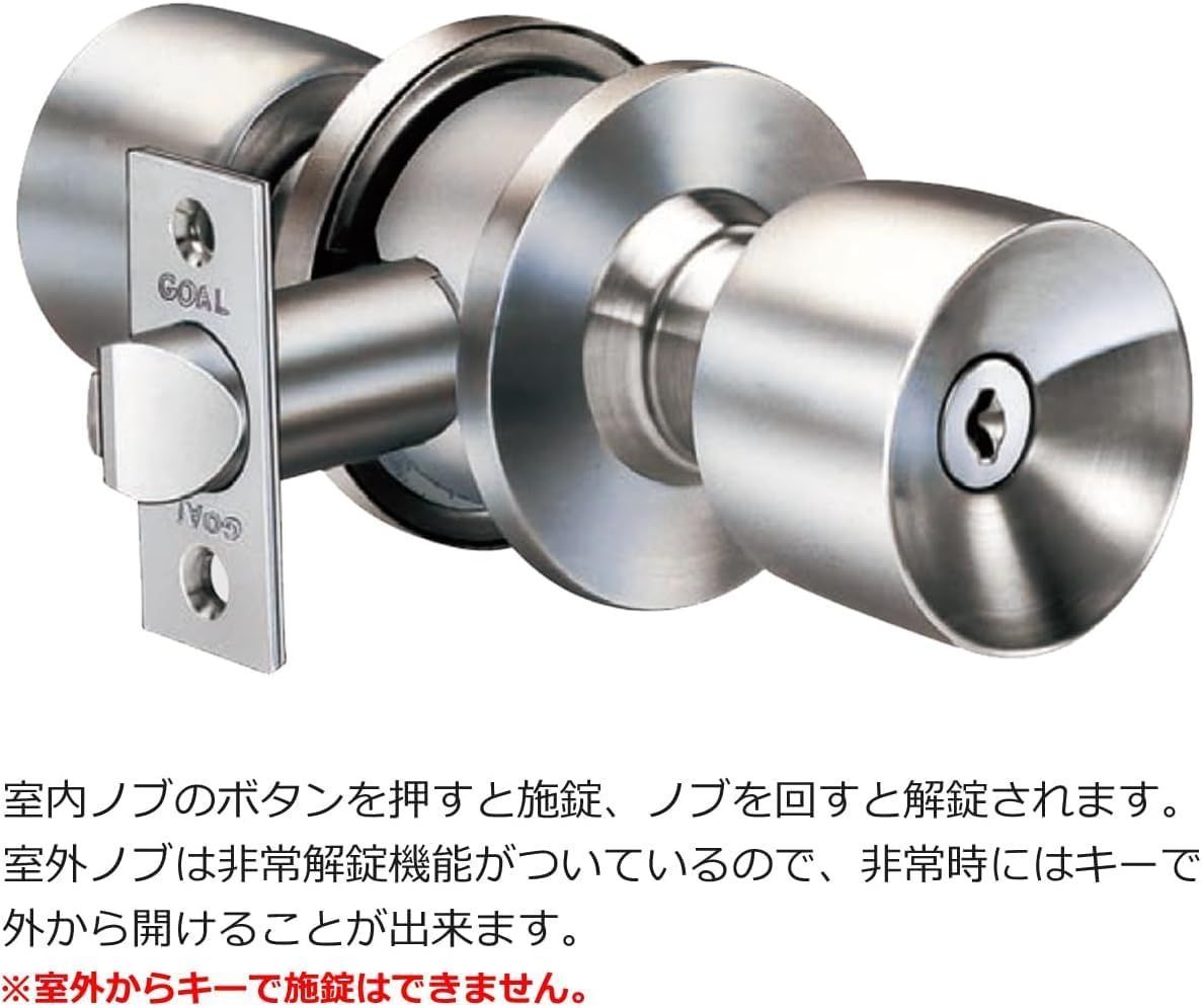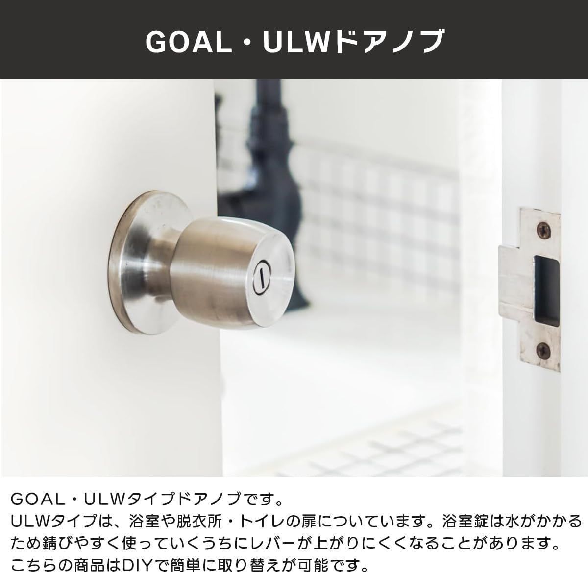 GOAL(ゴール) ドアノブ 浴室錠 ユニロック 円筒錠 交換 トイレ 風呂 鍵付き ULW-5E バックセット60mm 扉厚27?37mm 交換手順書付き