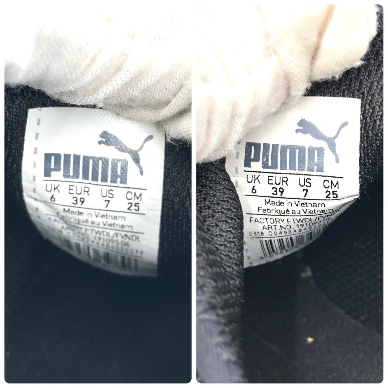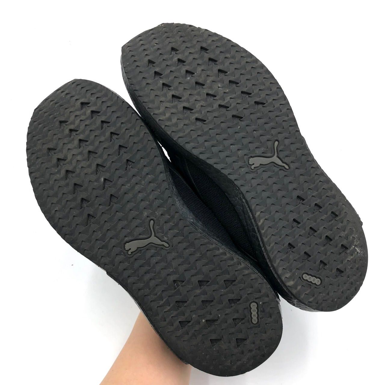 アッパーには若干の毛羽立ち、ソールには多少の汚れや擦れが見られますが、致命的なダメージはありません。インソールのロゴに擦れが見られます。アウトソールの摩耗は少なく、グリップ力は保たれています。