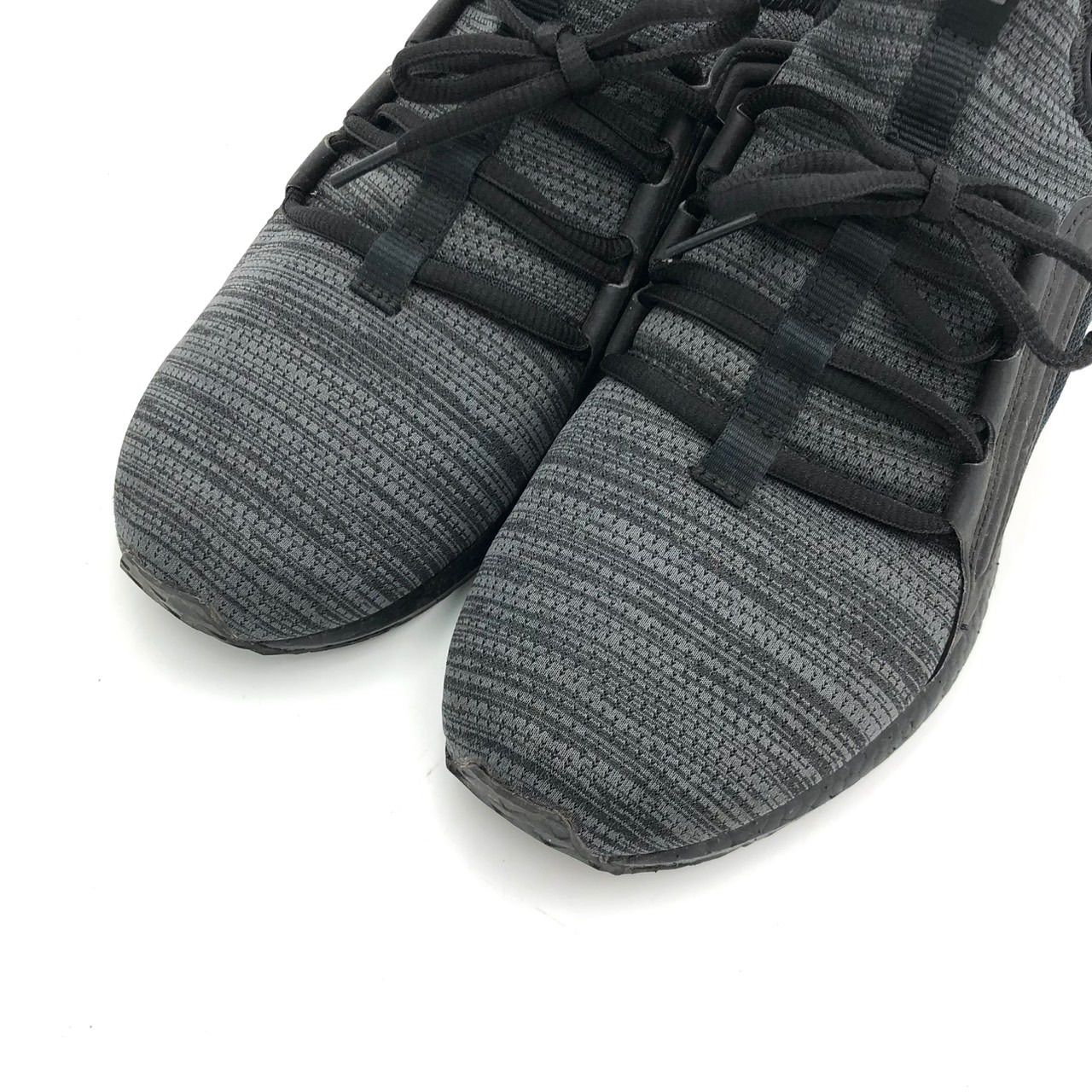 • 落ち着いたデザイン:ブラック系のメランジ調のアッパーとオールブラックのソールで、幅広いファッションに合わせやすいです。