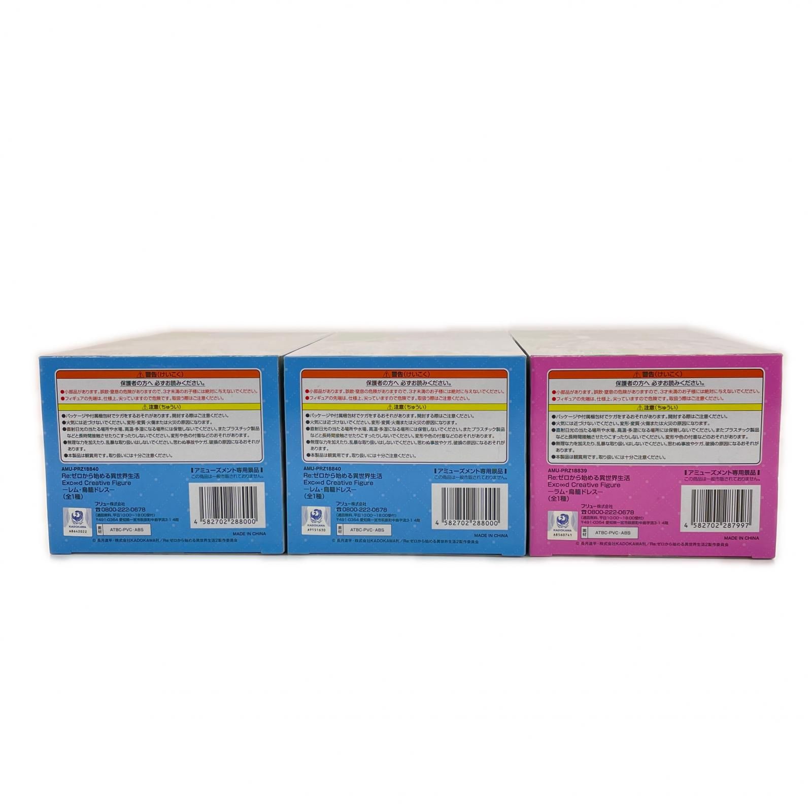 未使用 FuRyu 3点 まとめ売り Re:ゼロから始める異世界生活 Exc∞d Creative Figure レム ラム 鳥籠ドレス フィギュア ラウンドワン限定