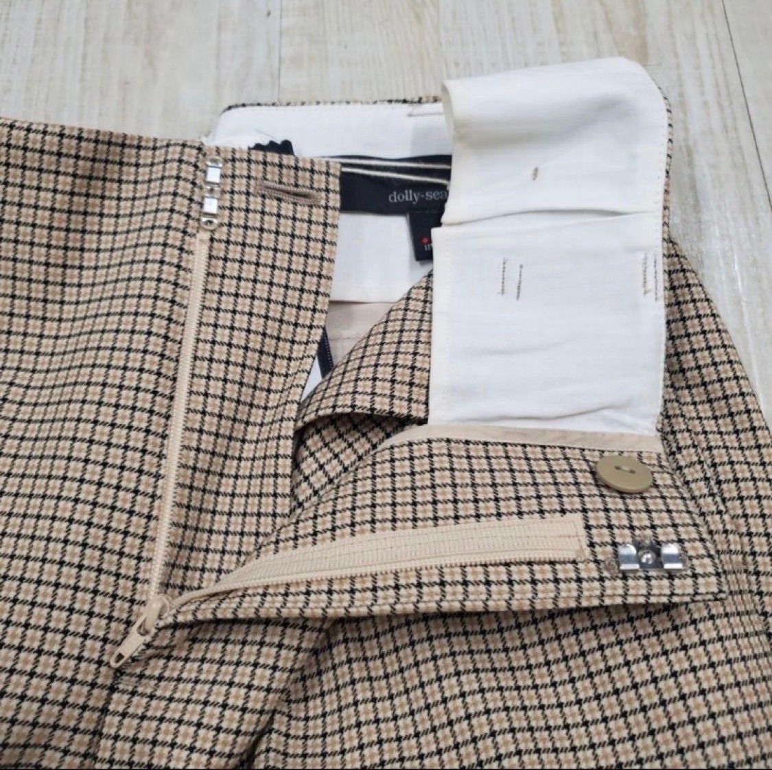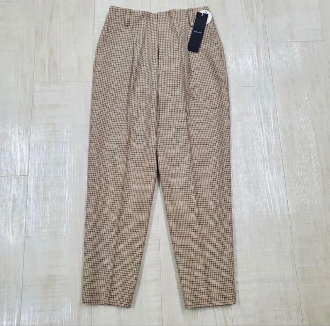 新品 ② dolly sean ドリー シーン ハンド ウォッシャブル センター プレス チェック テーパード パンツ ベージュ 系 サイズ 0