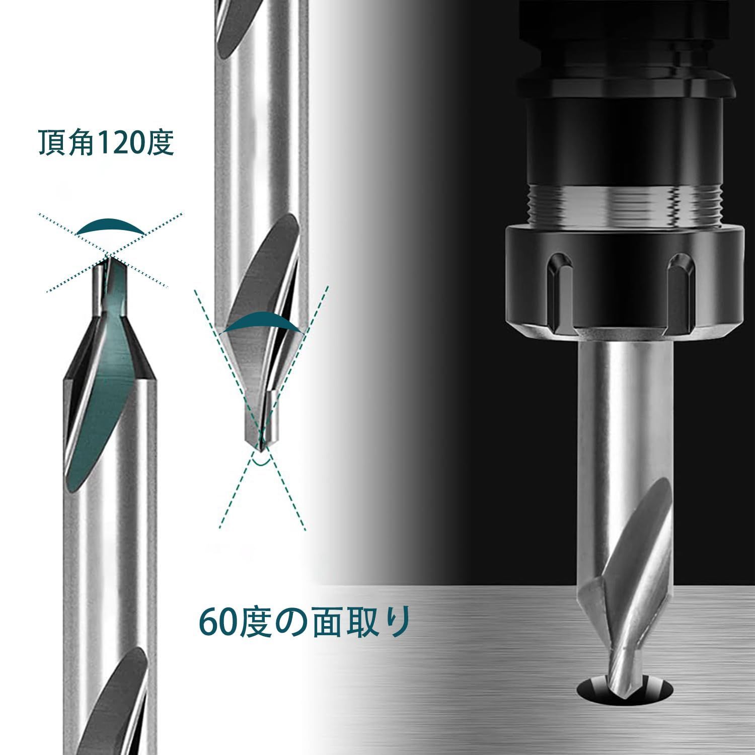各ビットにはダブルエンドがあり、標準の60度の角度で研削します