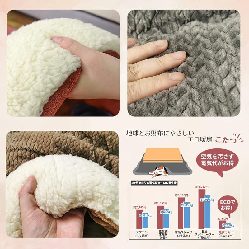 【こたつ本体対応サイズ】:正方形/約70~80×70~80cm角のこたつ