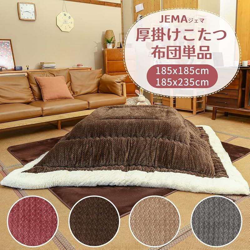 商品名:JEMA ジェマ こたつ布団 厚掛け こたつ掛け布団 コタツ掛け布団単品 正方形 こたつふとん ふわふわ あったか 洗える ケーブル模様 吸湿発熱 185x185cm ブラウン