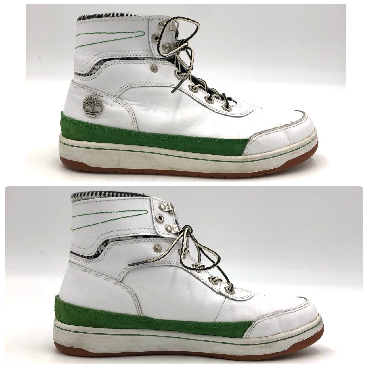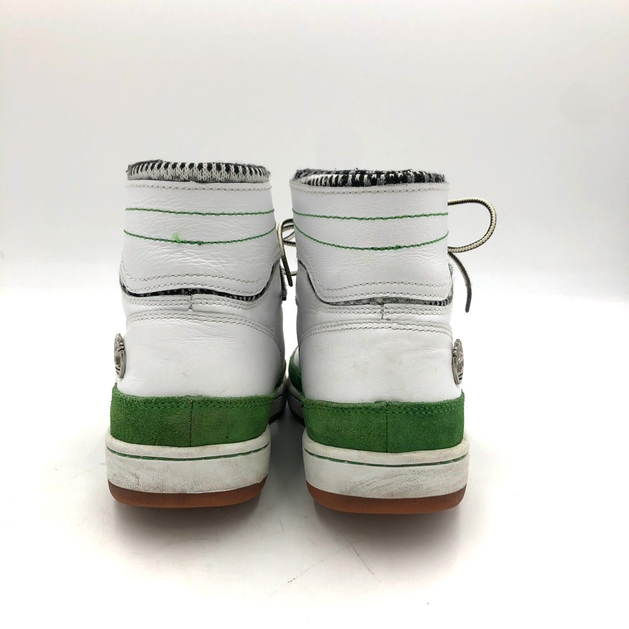• デザイン性: ホワイトレザーにグリーンのスエードとラインが映える、カジュアルでおしゃれなミッドカットスニーカーブーツです。