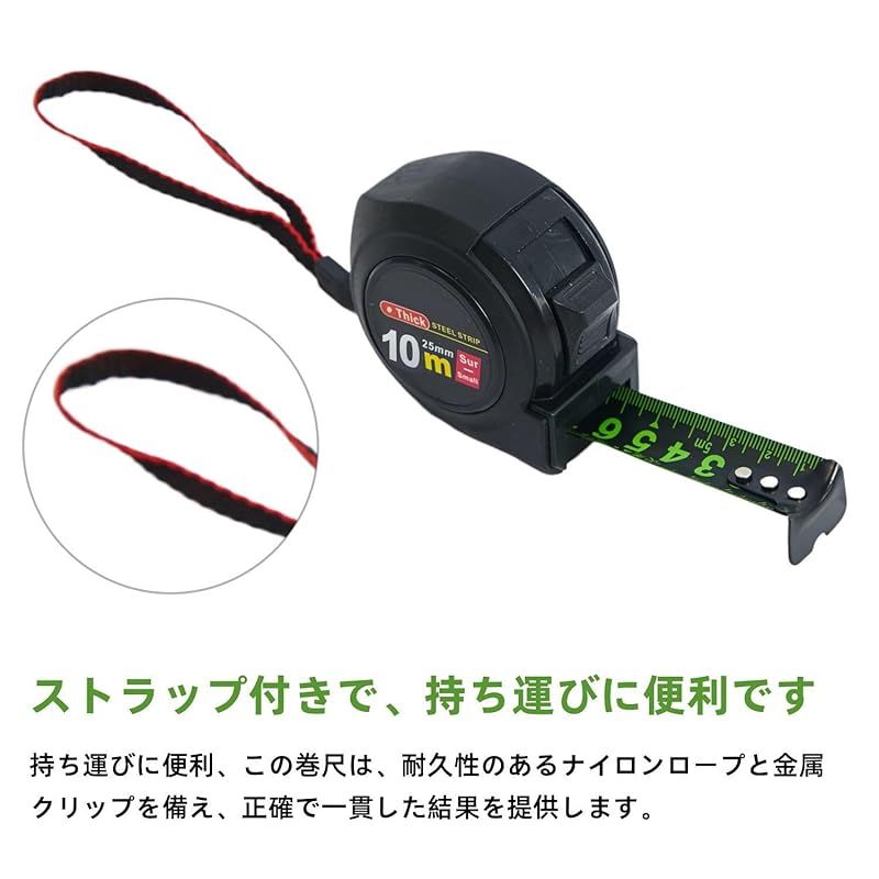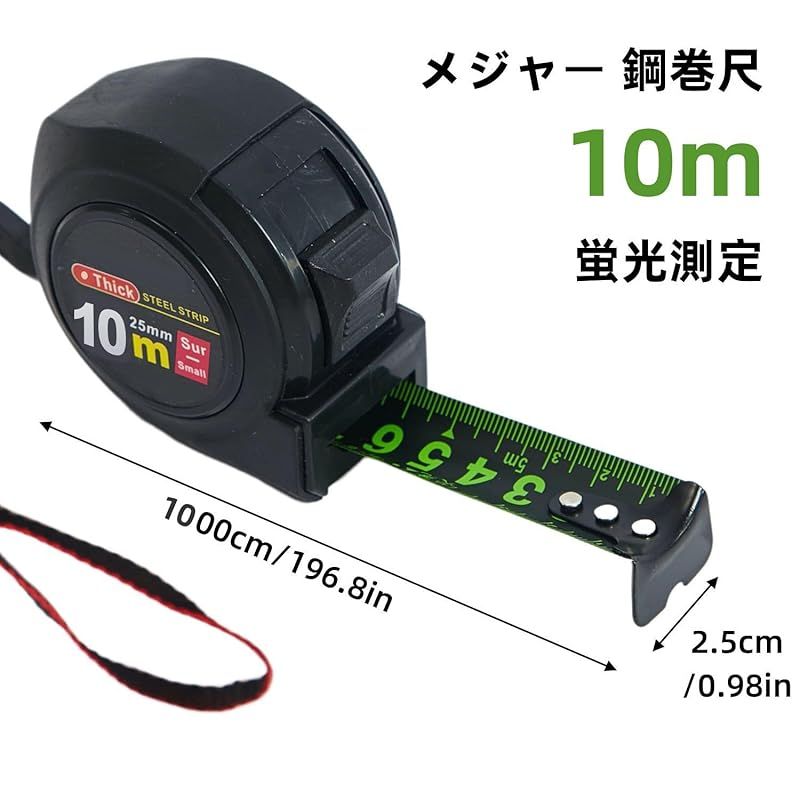 商品名:メジャー 巻尺 鋼巻尺 10m 蛍光測定テープ アップグレード版 蛍光テープ リトラクション制御 セルフロック メモリ機能付き 剛厚 ハイ精度 DIY対応 人間工学設計 距離測定器 防水 暗夜対応 縫製テーラークラフト定 家庭用建築ツール