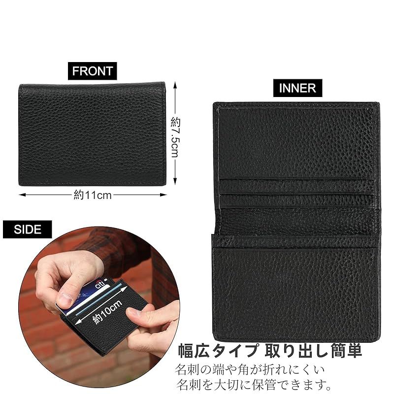 【商品詳細】素材:牛革 ◆カラー:ブラック ◆サイズ:約11cm×約7.cm×約2cm ◆仕様:ポケット×5 ◆容量:名刺50枚収納可