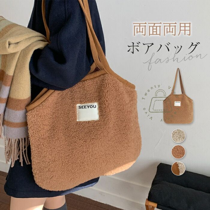 スエード バッグ 両面使える ボアバッグ レディース トートバッグ ボア ショルダーバッグ 大きめ 肩掛けバッグ 軽い 大容量 もこもこ スエードバッグ 軽量 通勤通学 可愛い 人気バッグ 秋冬バッグ 鞄 おしゃれ カジュアル プレゼント 送料無料