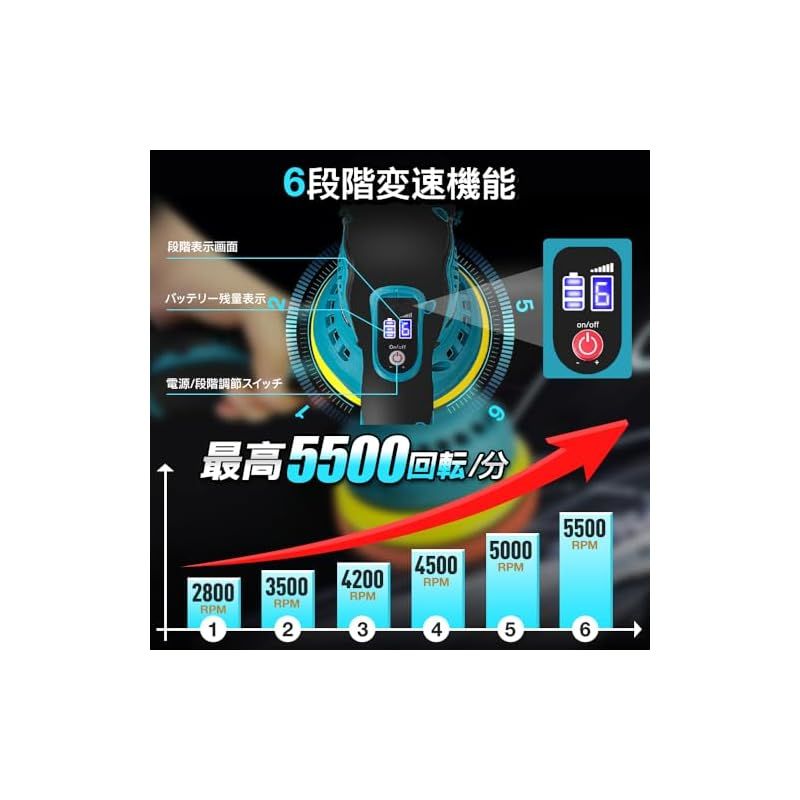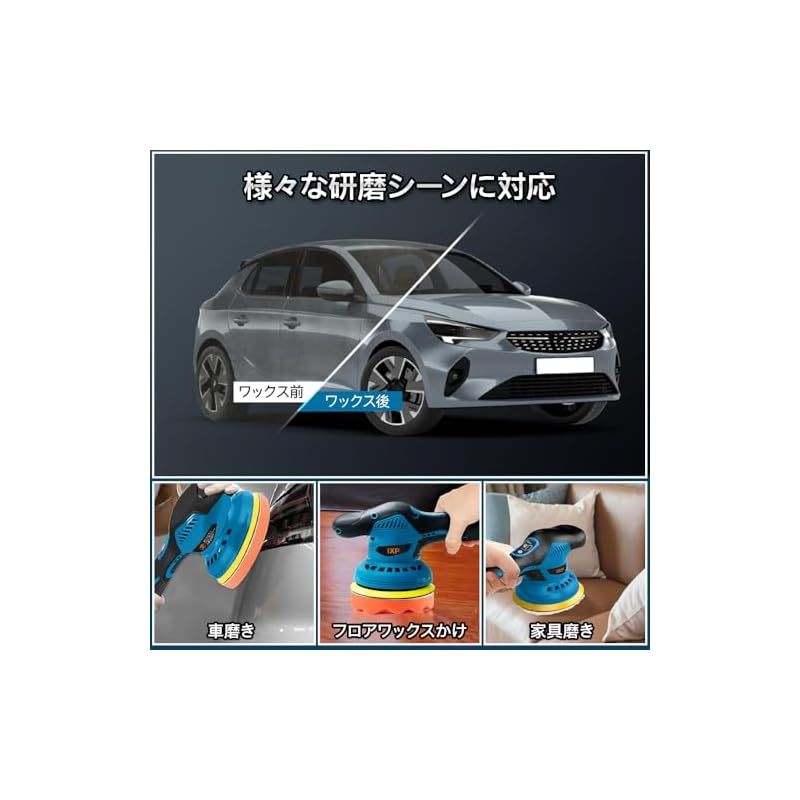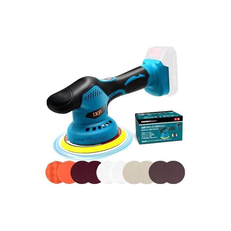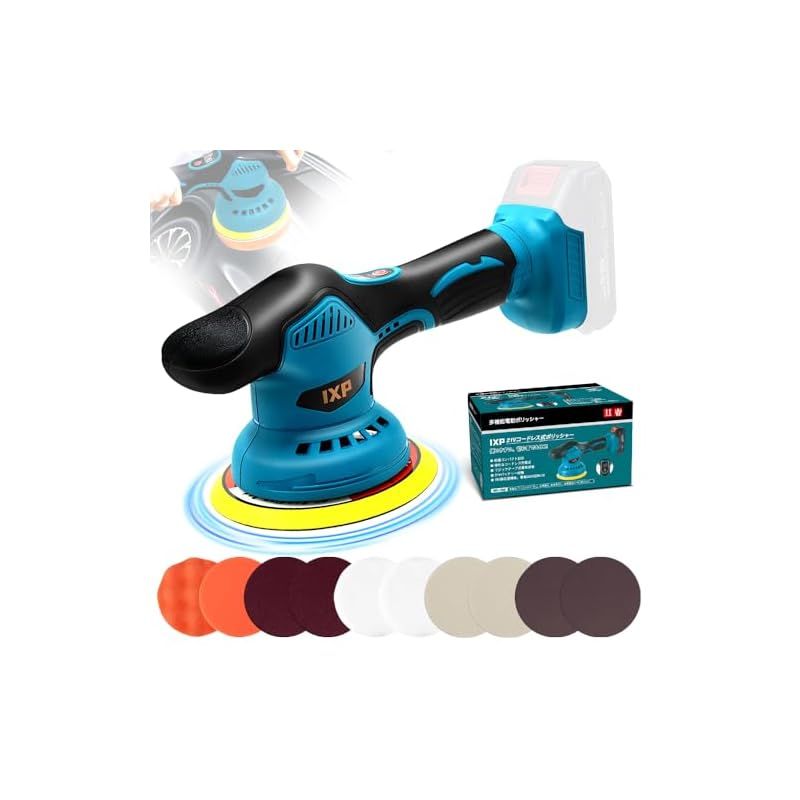 商品名:IXP ポリッシャー 車 150mmバフ ダブルアクション 8段階変速 和式バフ付き 21V/18V 電動ポリッシャー マキタ18Vバッテリー対応可能 2800-5500RPM コードレス 充電式 偏心構造 残量表示付き 研磨機 洗車 車磨き 傷消し 艶出し