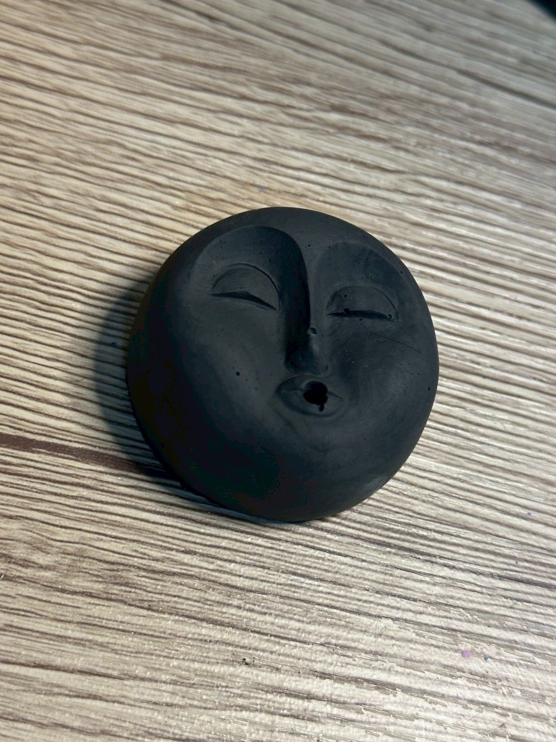 落ち着いたブラックの、フェイスモチーフお香立てです。