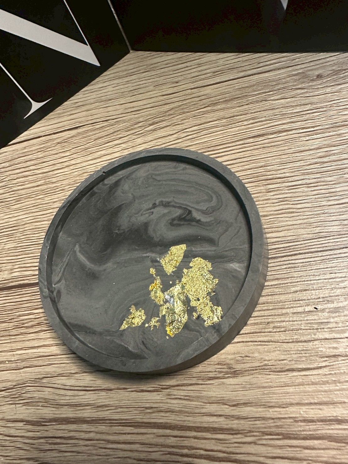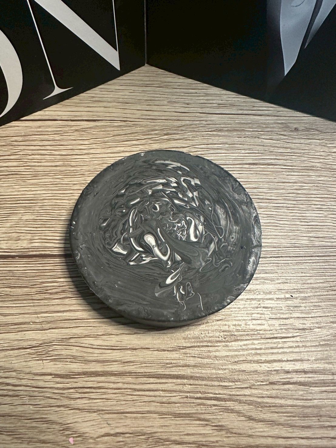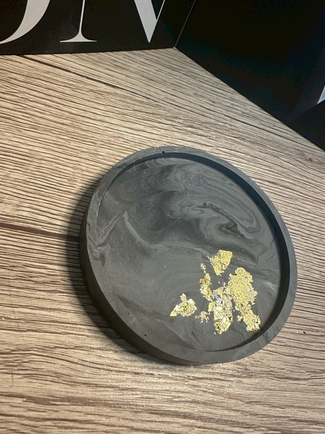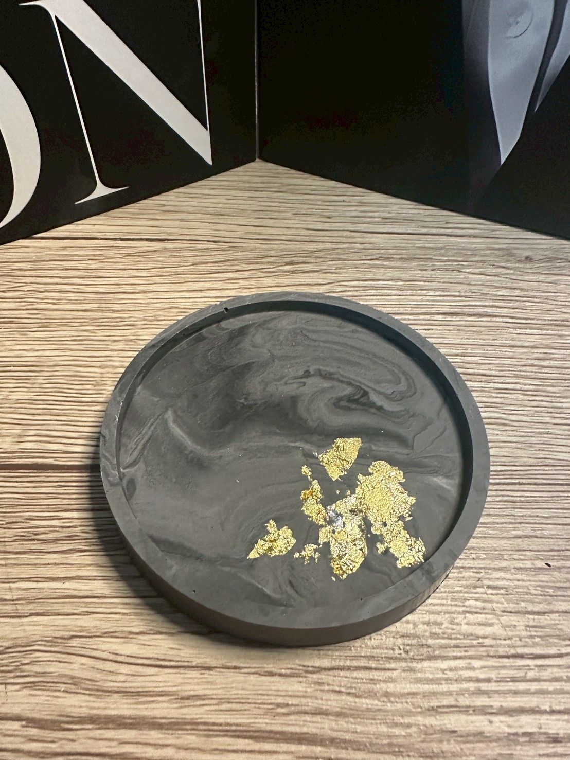 【ハンドメイド ラウンドトレイ/ブラックマーブル】