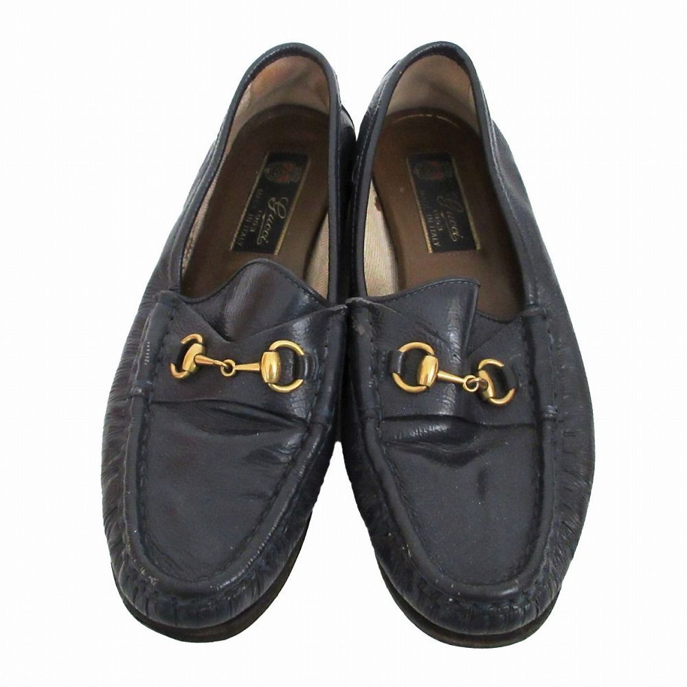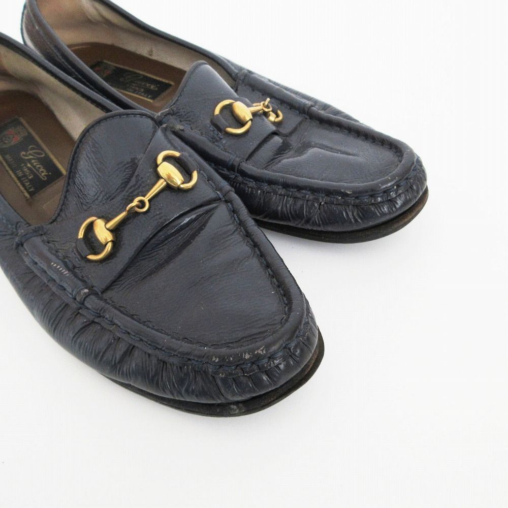 ・商品名【GUCCI グッチ ヴィンテージ オールド エナメル ビットローファー シューズ ネイビー サイズ35.5 22.5cm レディース】